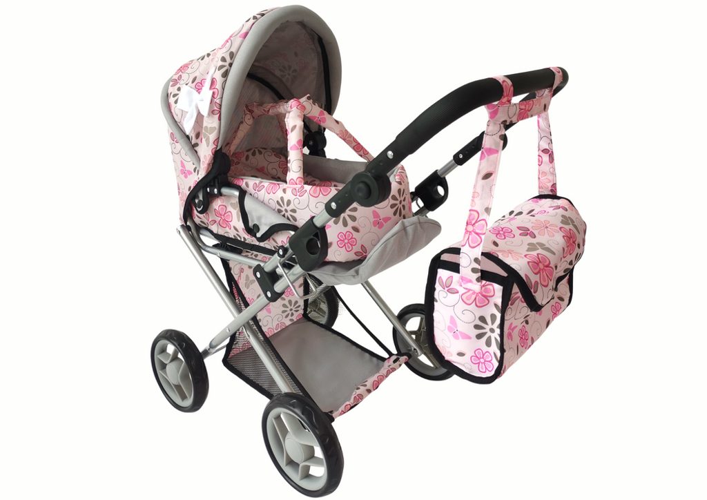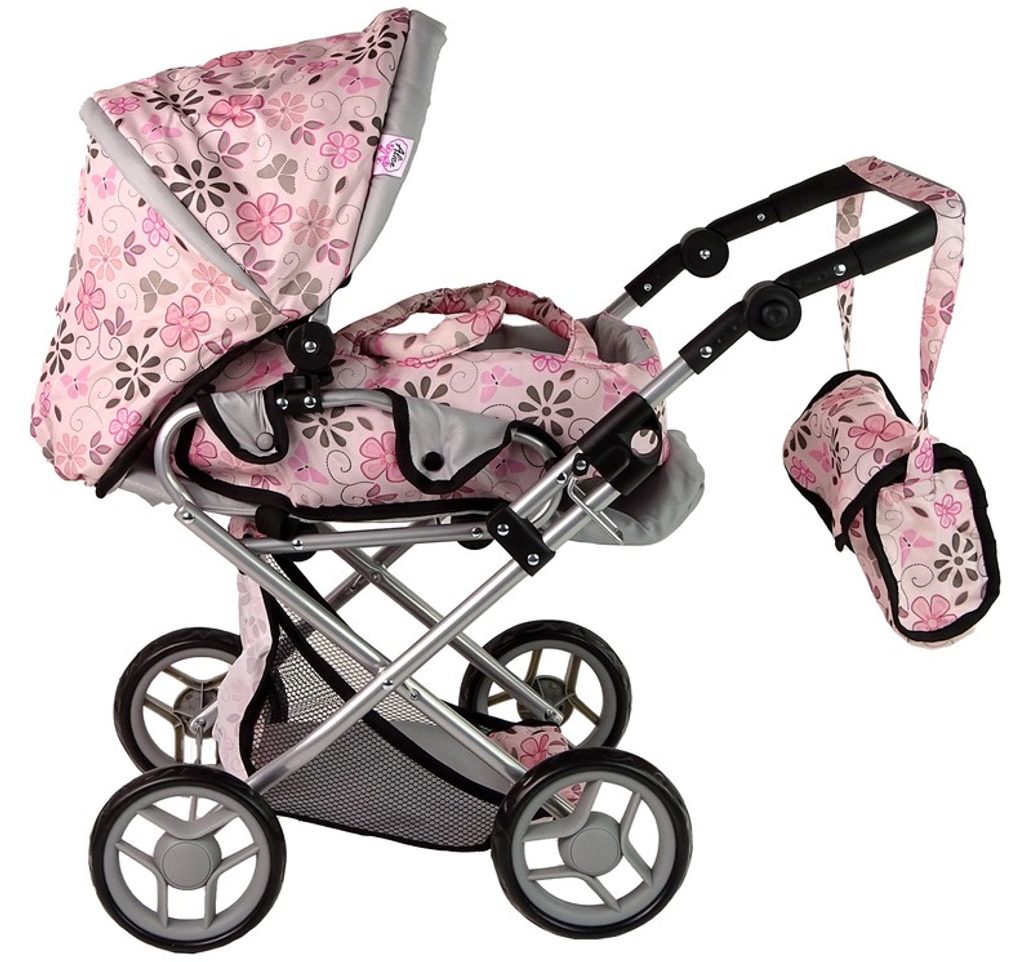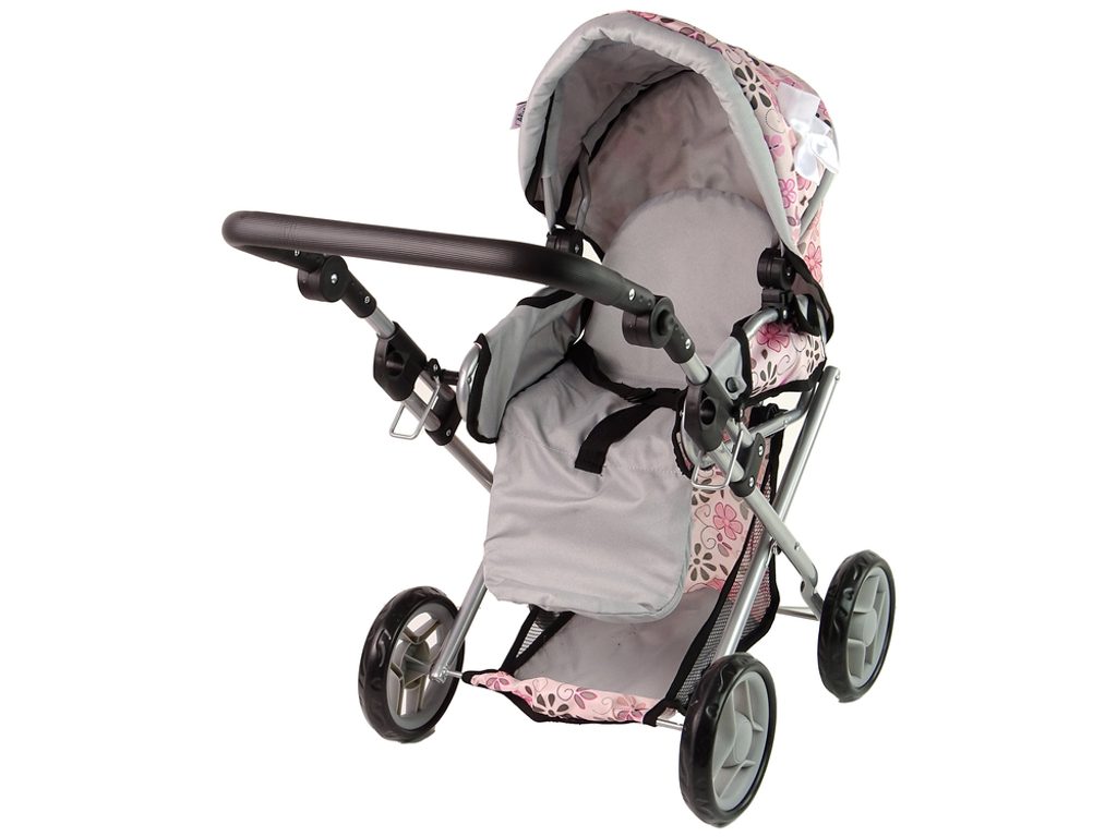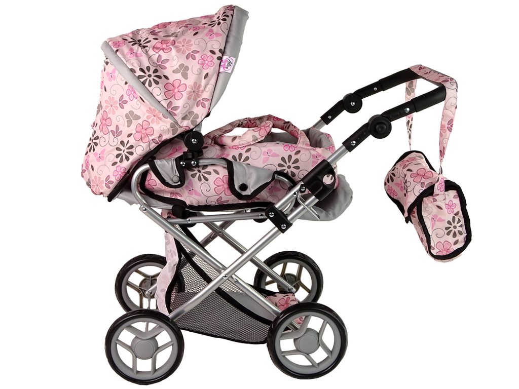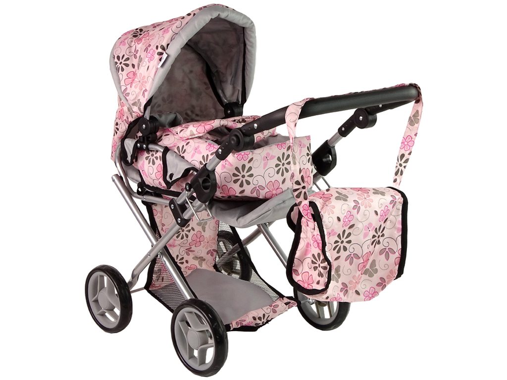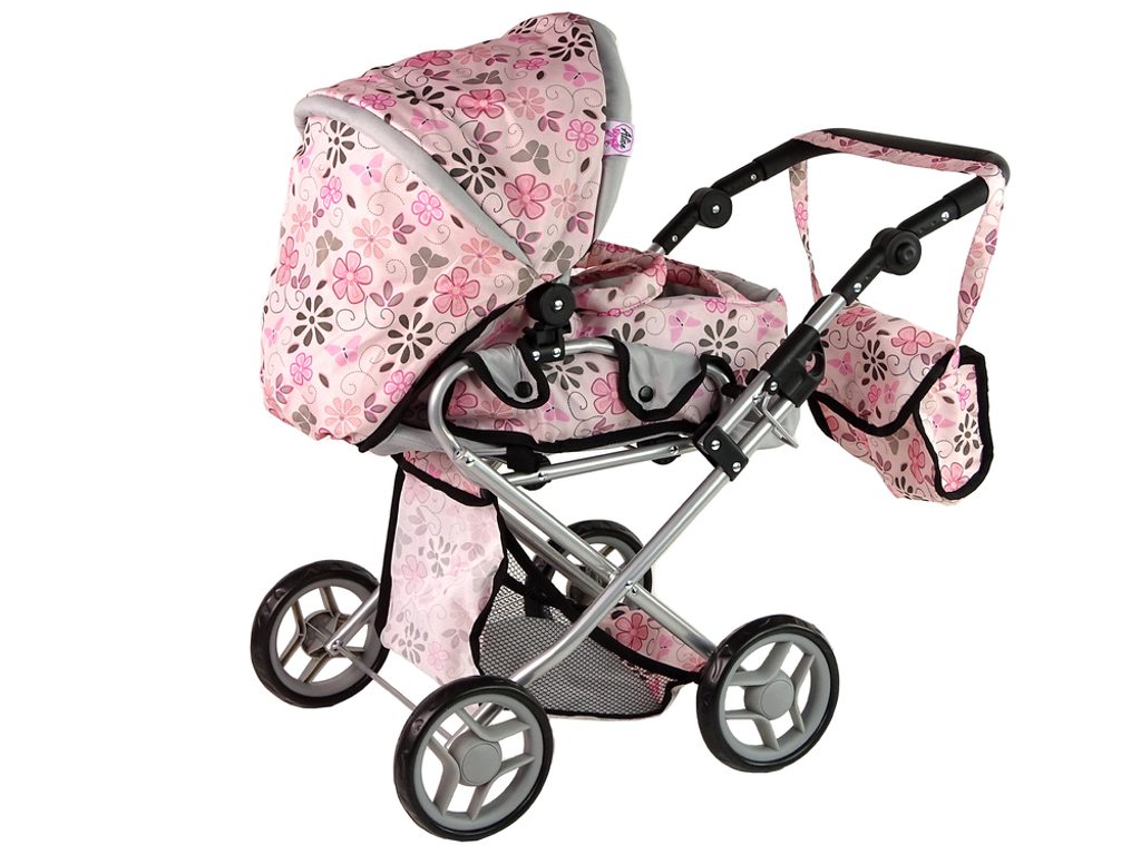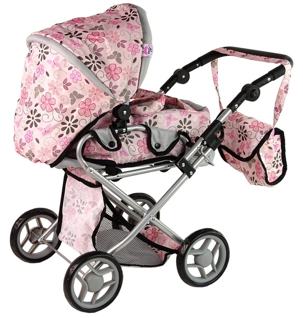 Alice kočárek pro panenky 9346 kombinovaný růžový s kytičkami