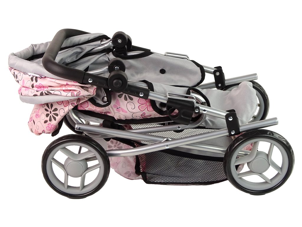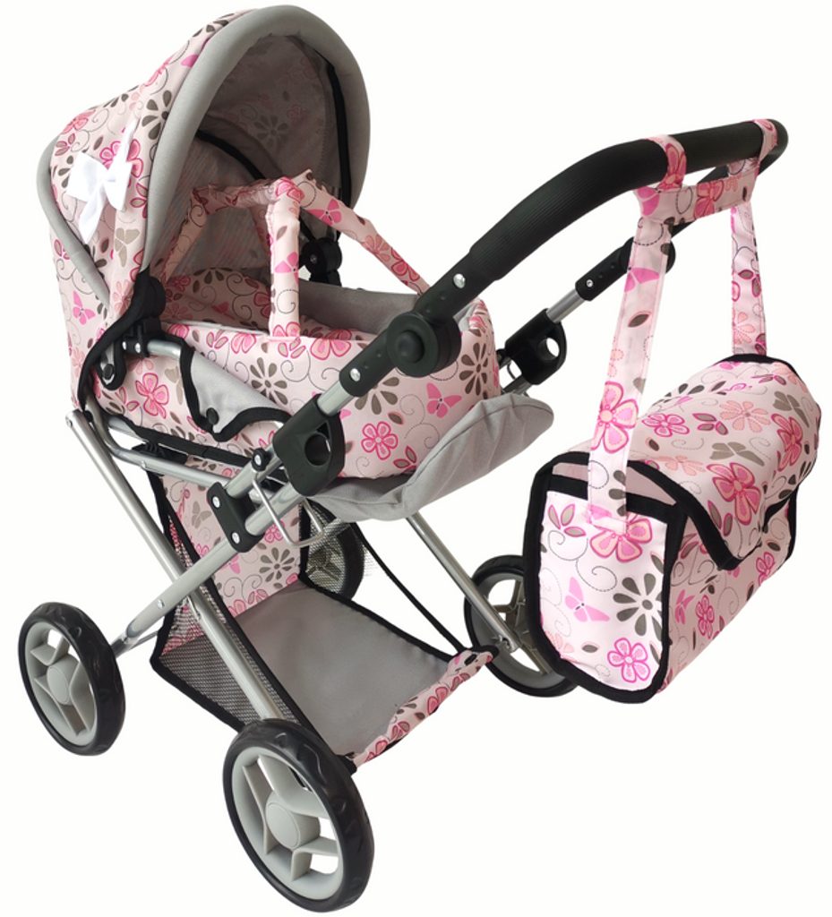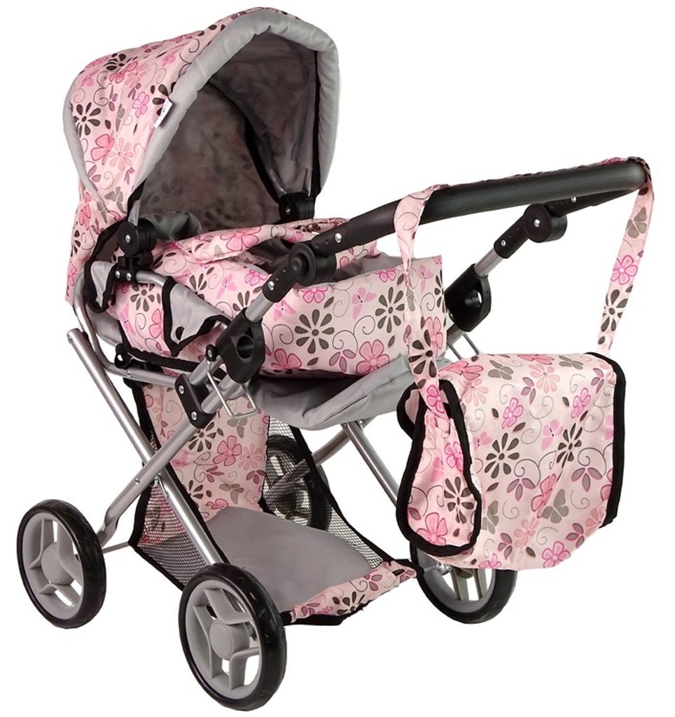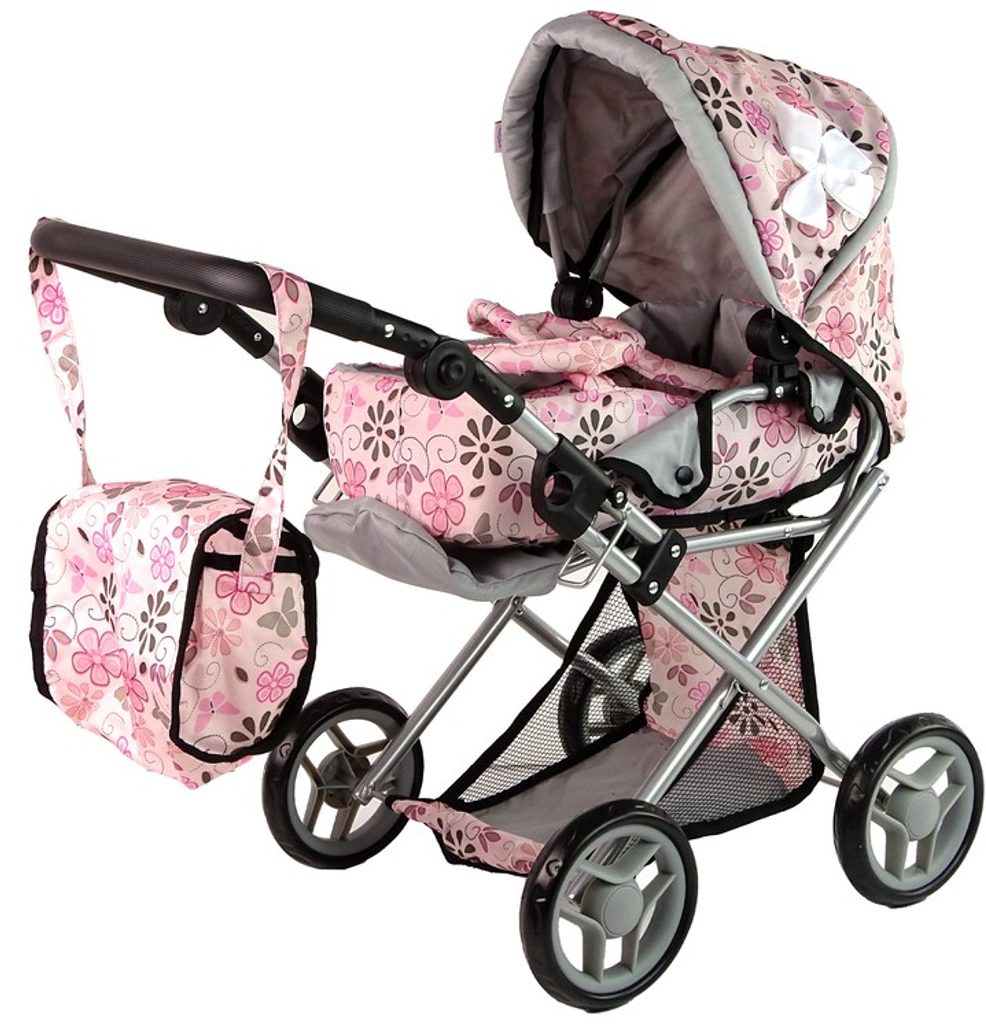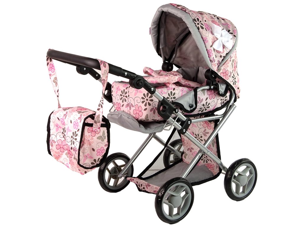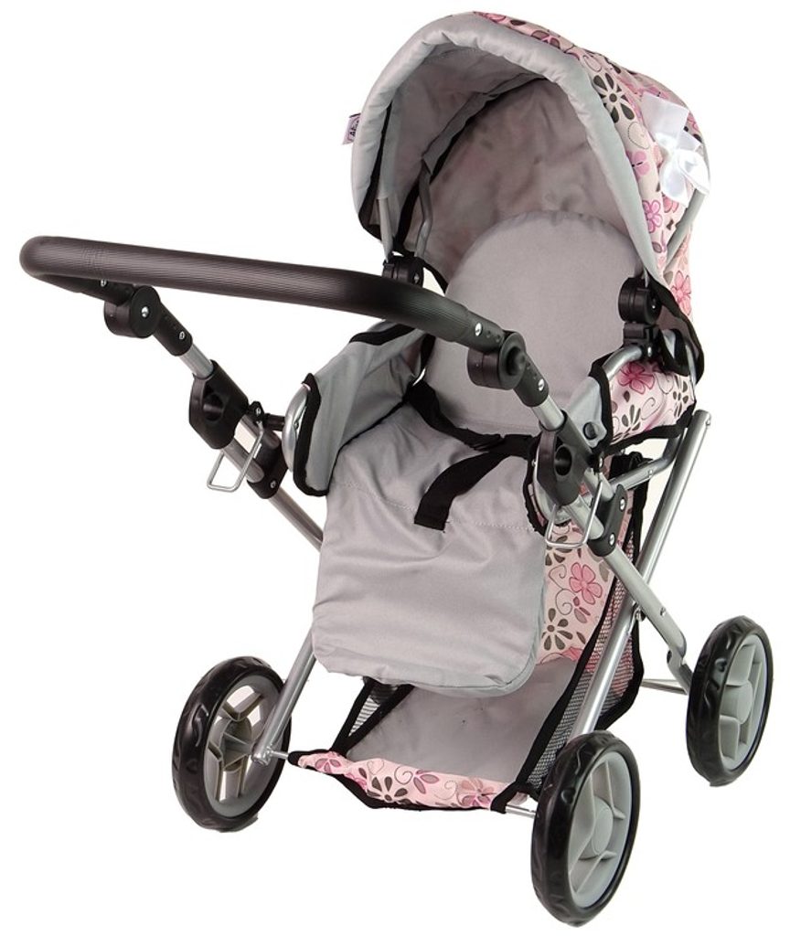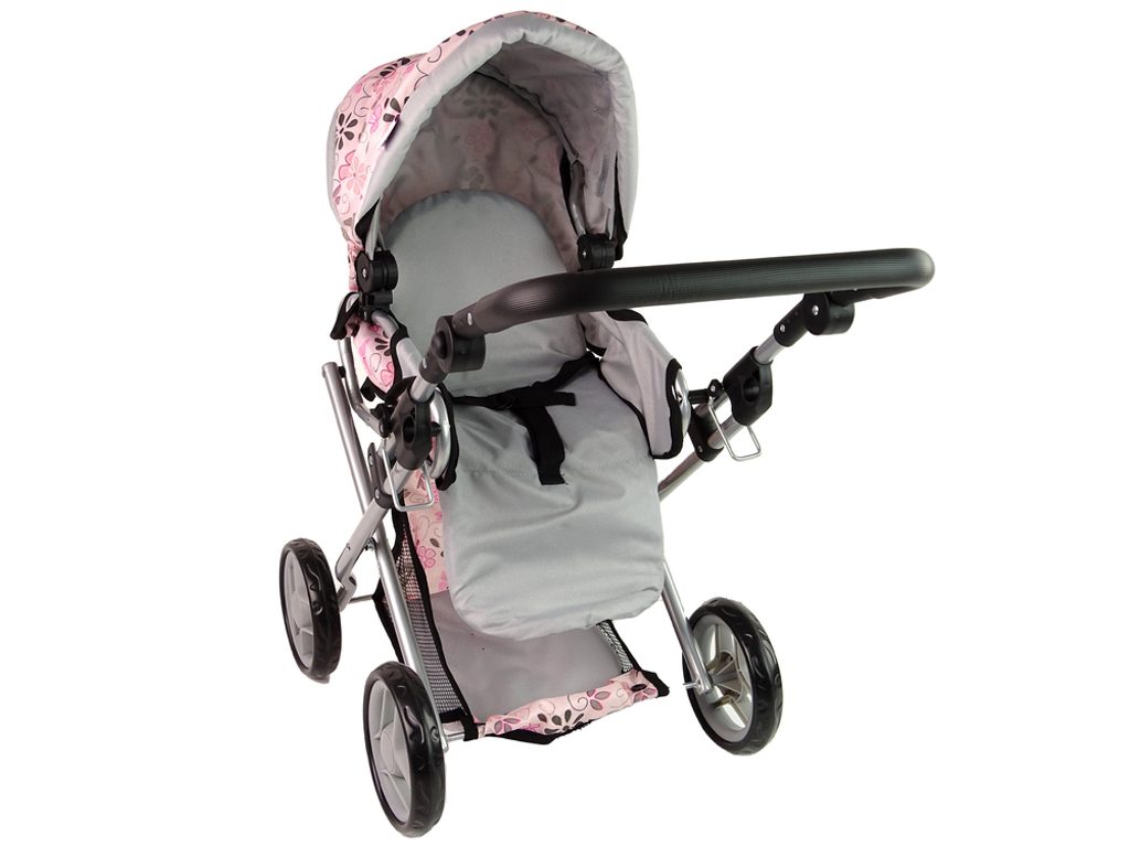 Alice kočárek pro panenky 9346 kombinovaný růžový s kytičkami