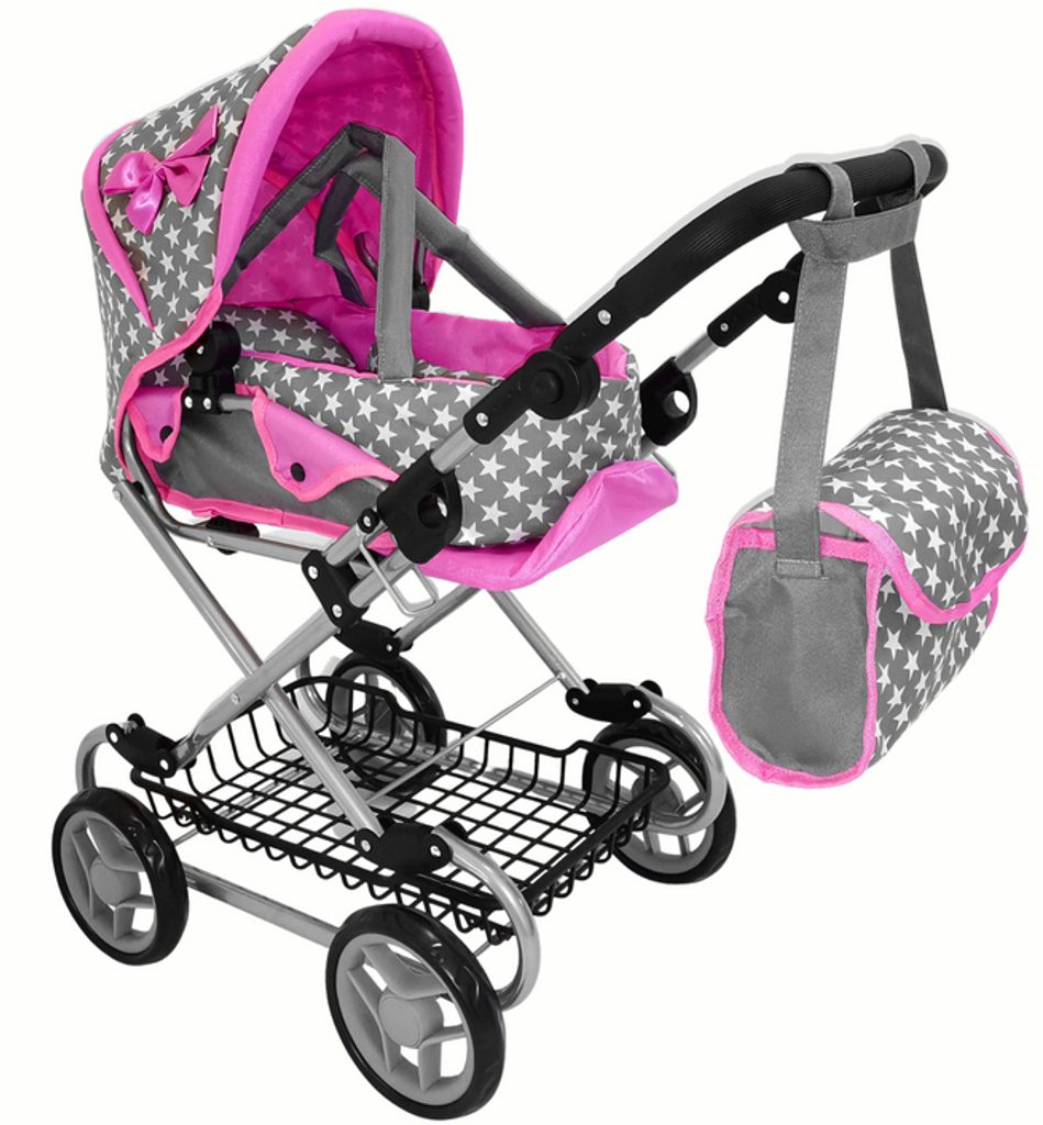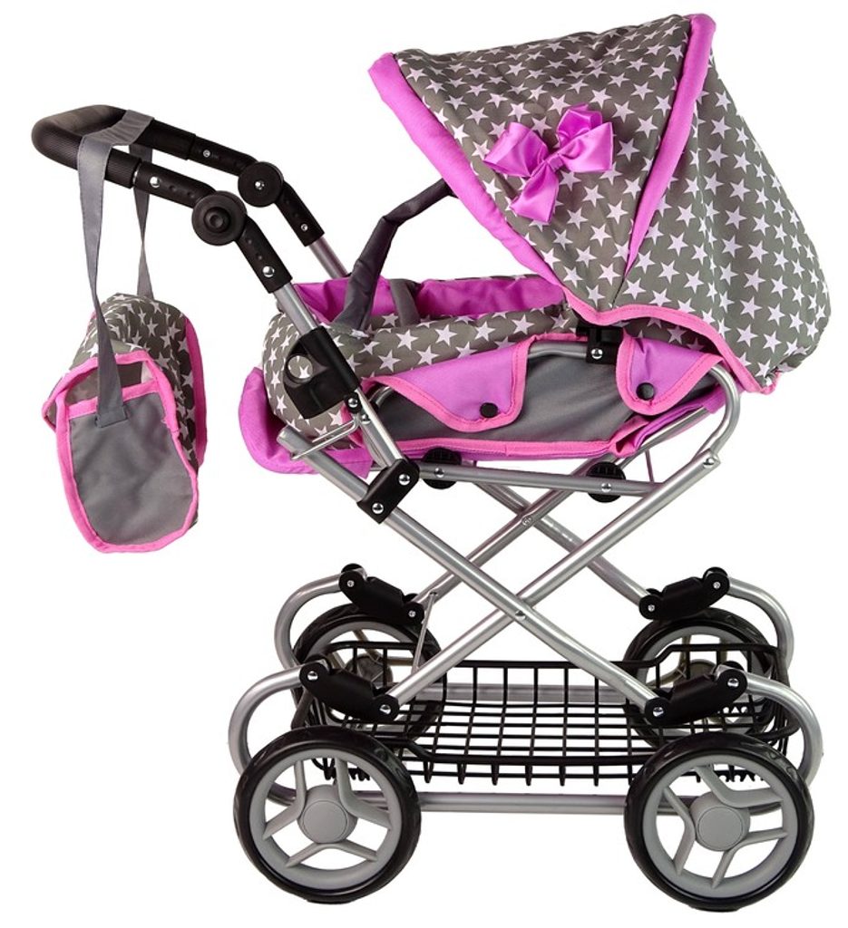 Alice kočárek pro panenky kombinovaný 5246W šedo-růžová