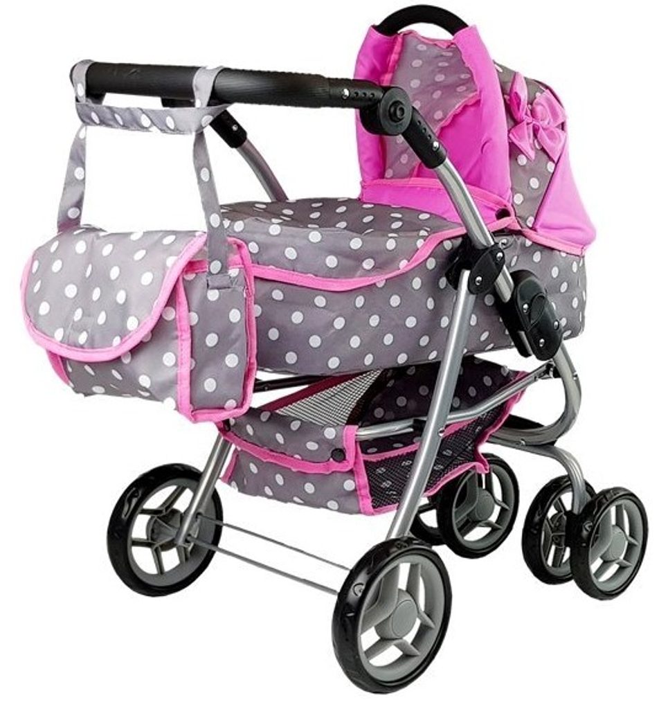 Kombinovaný kočárek pro panenky 3v1 Alice 9662M má velmi lehkou stabilní konstrukci vyrobenou z hliníkových trubek, svrchní část je z impregnované bavlny. Rukojeť kočárku je nastavitelná a obalená pěnou a lze ji tak nastavit dle věku dítěte. Uvnitř kočárku je korbička sloužící k snadnému přenášení panenky. Před automatickým složením chrání dítě blokace. Panenka je ve sportovní verzi proti vypadnutí zabezpečena bezpečnostním pásem. Jednoduchá změna z hluboké na sportovní verzi. Součástí kočárku je praktická závěsná taška a podložka pod panenku.