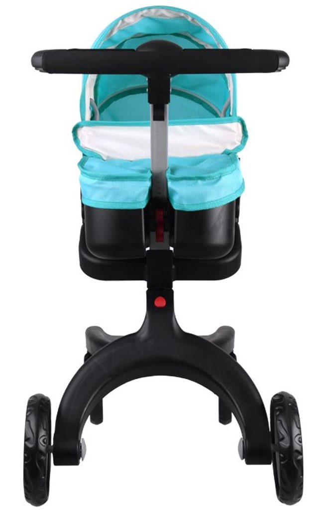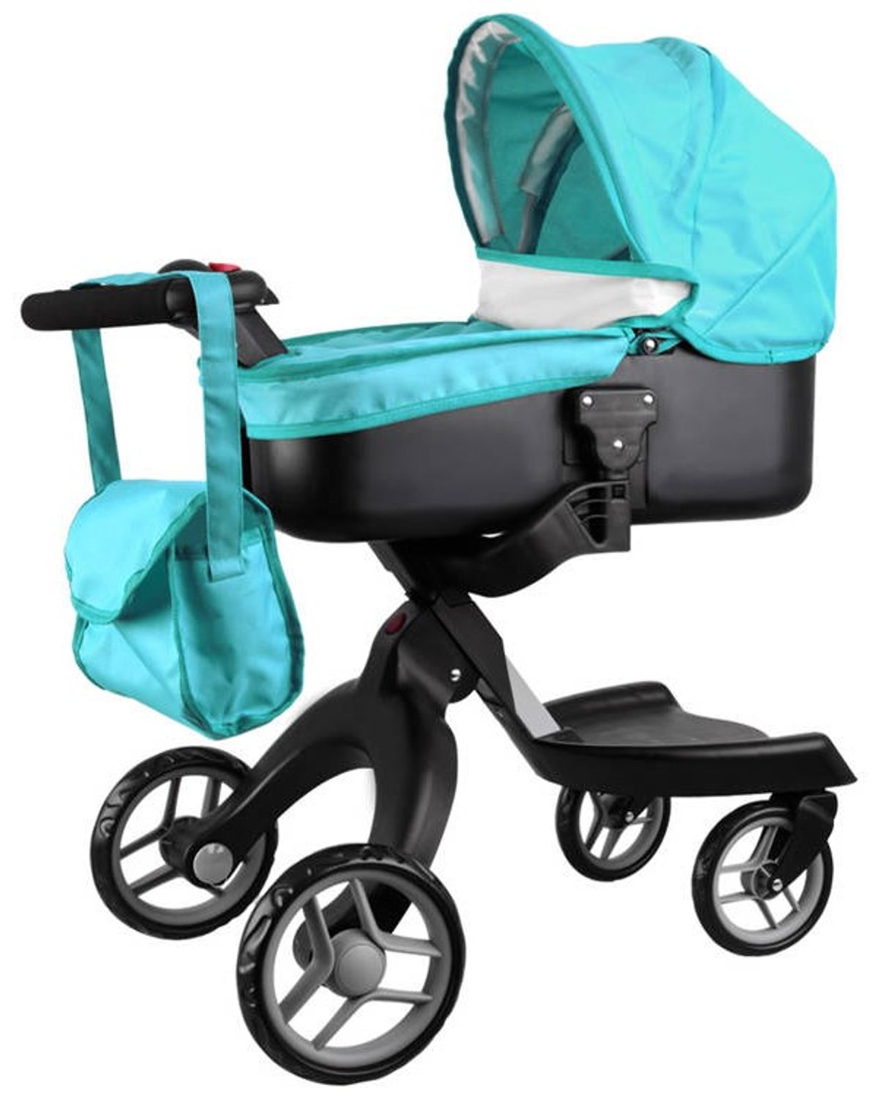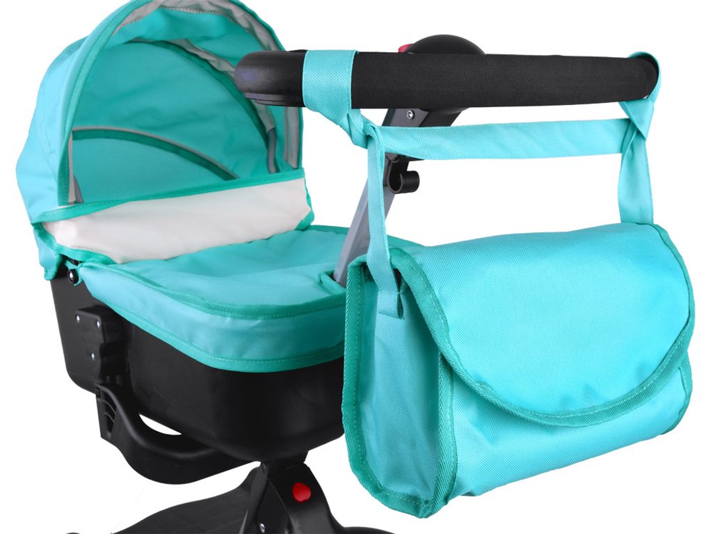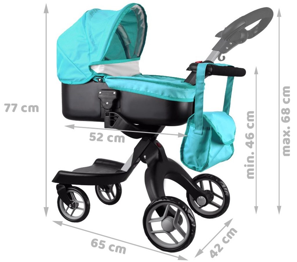 Moderní hluboký kočárek pro panenky Alice 4544 má velmi lehkou stabilní konstrukci vyrobenou z plastu a hliníku, svrchní část je z impregnované bavlny. Rukojeť kočárku je nastavitelná od 46 do 68 cm. Přední kola kočárku jsou otočná. Ve spodní části je umístěna polička na drobnosti, součástí kočárku je i látková taštička. Je vhodný pro panenky do velikosti 45 cm.
