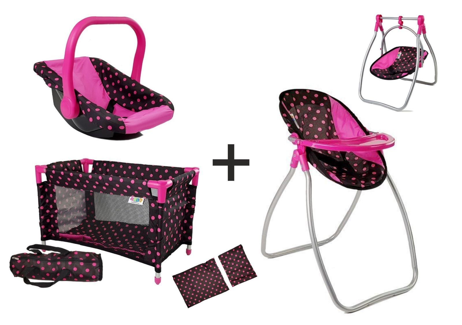 Postýlka pro panenku Alice je ideálním doplňkem ke každému kočárku pro panenky. Lze ji využít k uložení panenky nebo jako cestovní postýlku. Obsahuje peřinku a tašku pro přenos postýlky. Vyznačuje se nízkou hmotností kdy je konstrukce vyrobena z hliníkových trubek. Je určena pro panenky do velikosti 45 cm. Alice nosítko pro panenku je ideálním doplňkem ke každému kočárku pro panenky. Lze ji využít ke snadnému přenášení panenky nebo jako cestovní postýlku. Proti vypadnutí panenky je nosítko vybaveno bezpečnostními pásy. Vyznačuje se nízkou hmotností kdy je konstrukce vyrobena z plastu. Je určena pro panenky do velikosti 45 cm. Alice jídelní židlička 2v1 pro panenku s houpačkou je ideálním doplňkem ke každému kočárku pro panenky. Lze ji jednoduchým způsobem přeměnit ze židličky s jídelním tácem na houpačku. Vyznačuje se nízkou hmotností kdy je konstrukce vyrobena z hliníkových trubek. Je určena pro panenky do velikosti 45 cm.