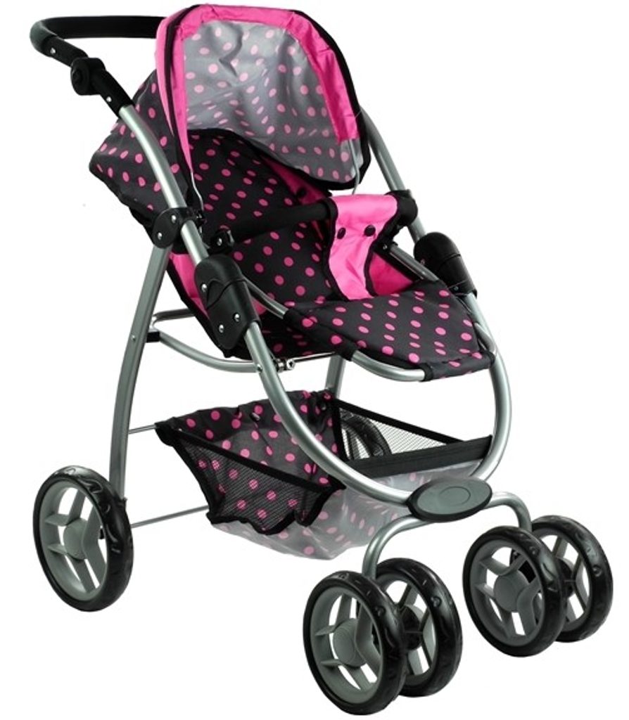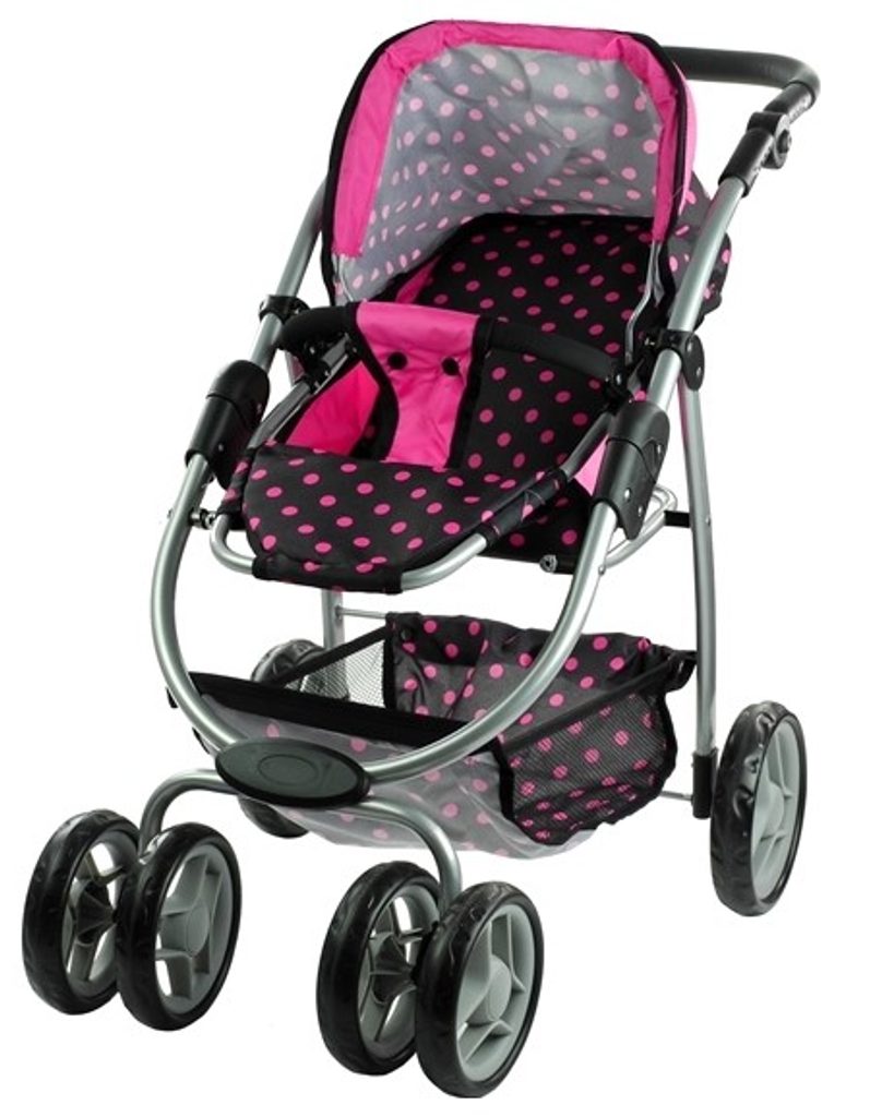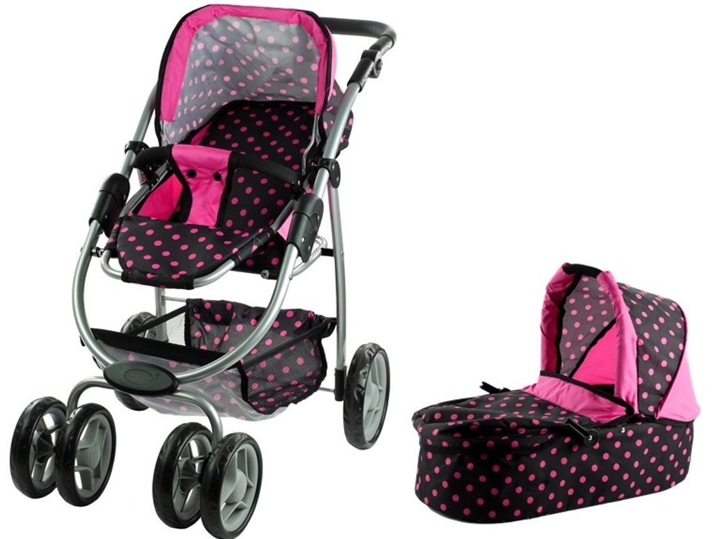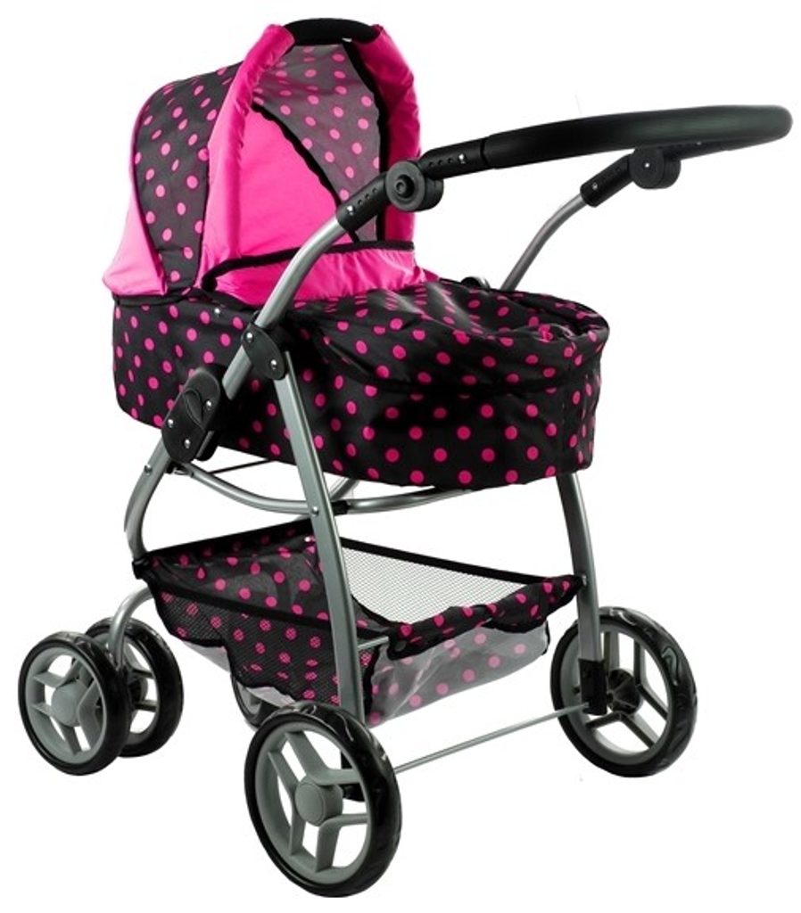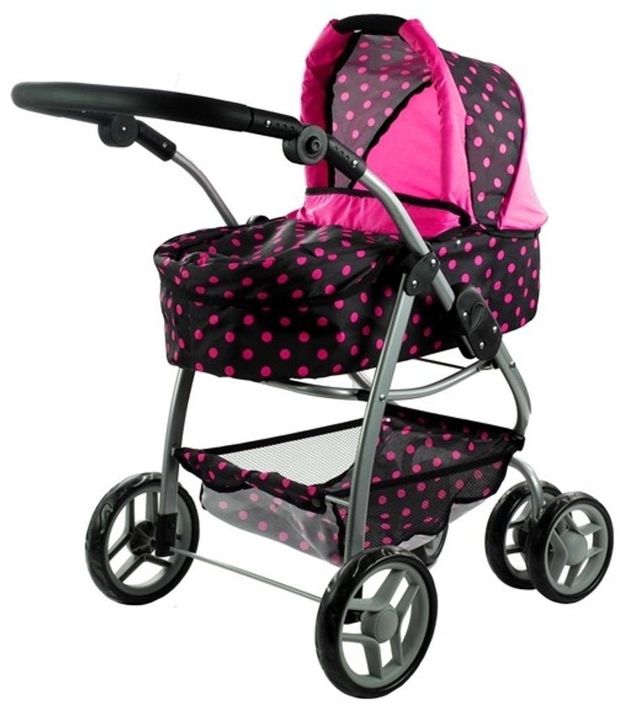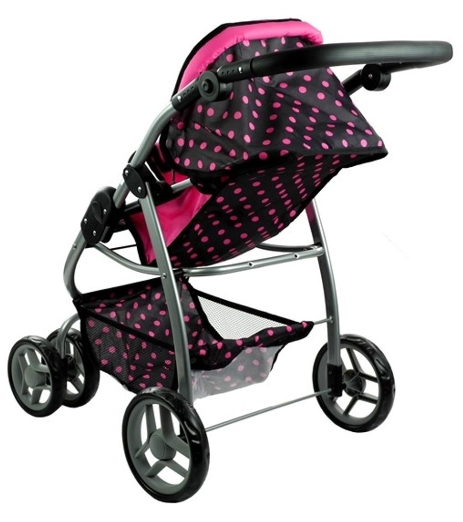 Alice velký sportovní kočárek pro panenky 3v1 - 9662 černý s puntíkama