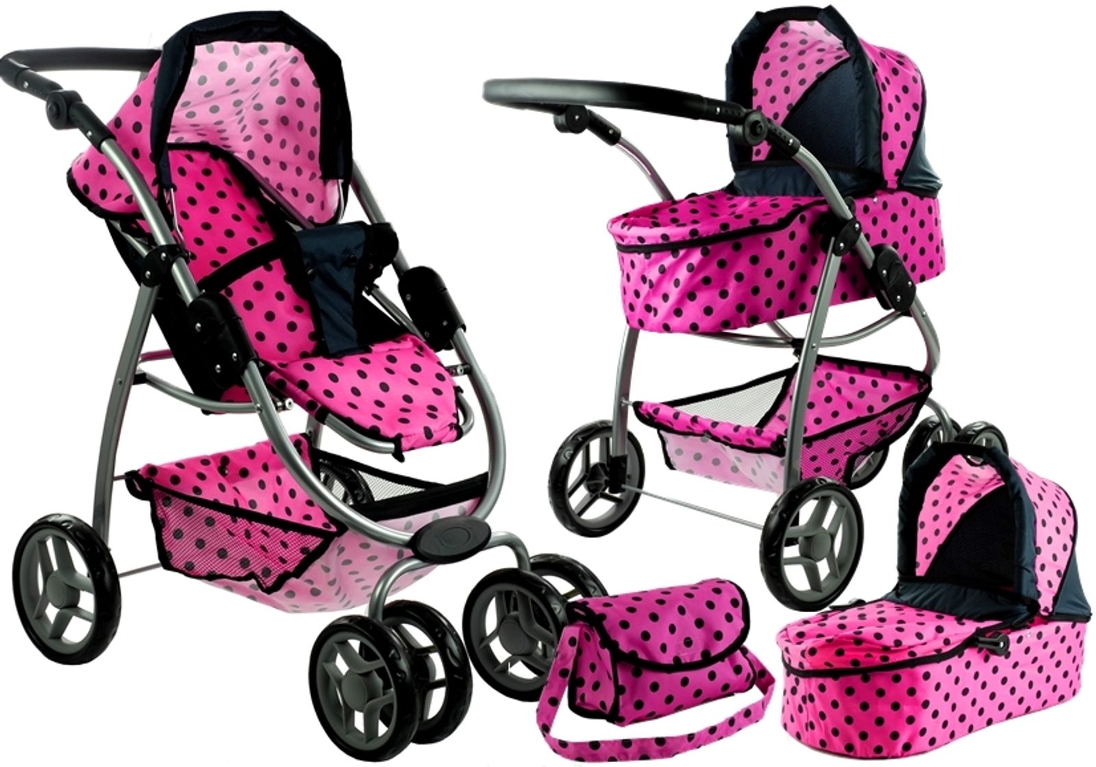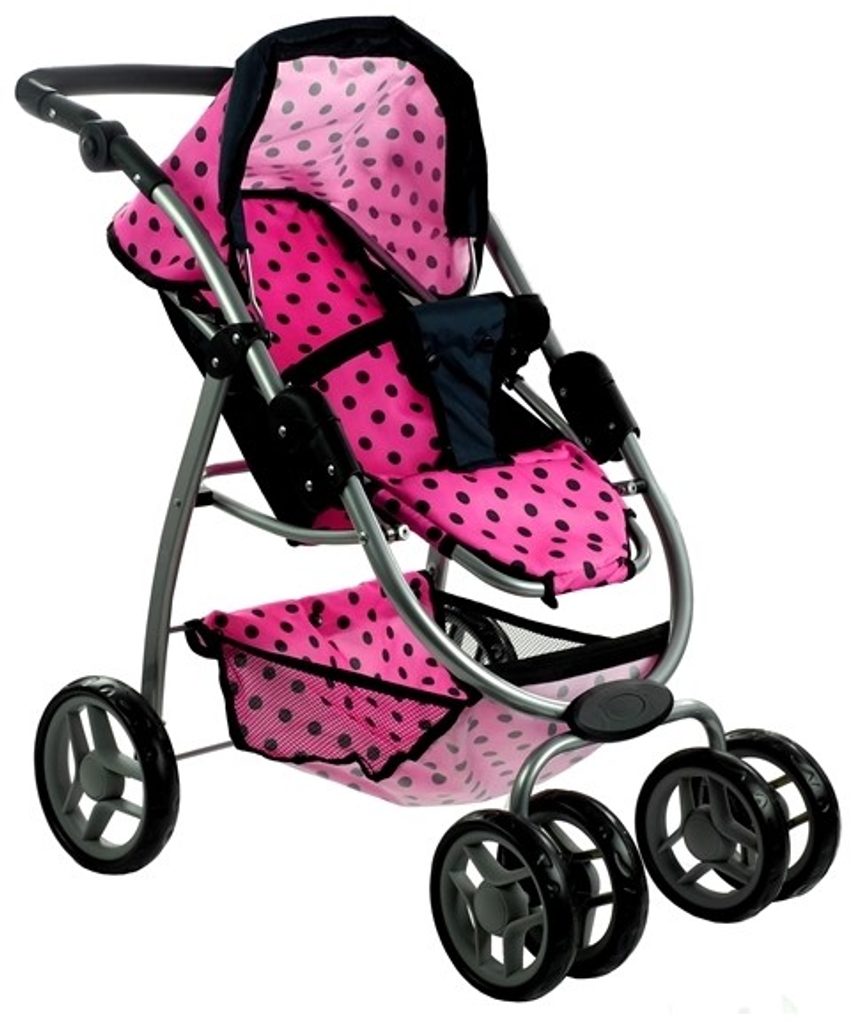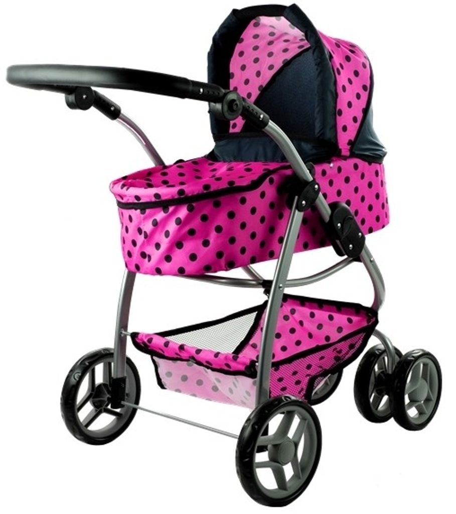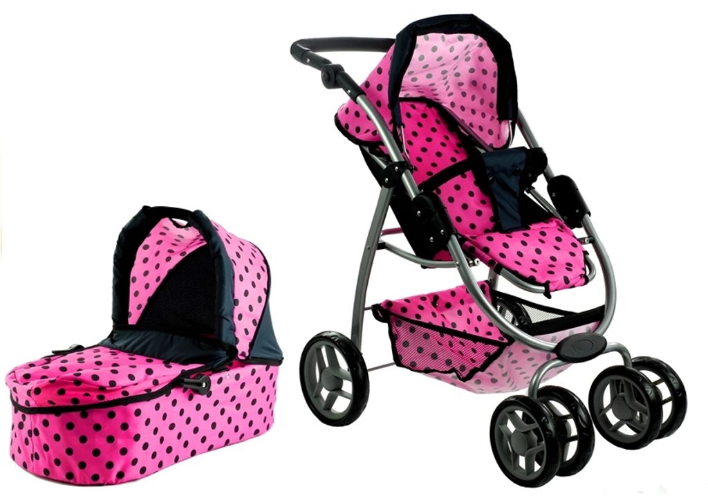 Alice velký sportovní kočárek pro panenky 3v1 - 9662 růžový s puntíkama