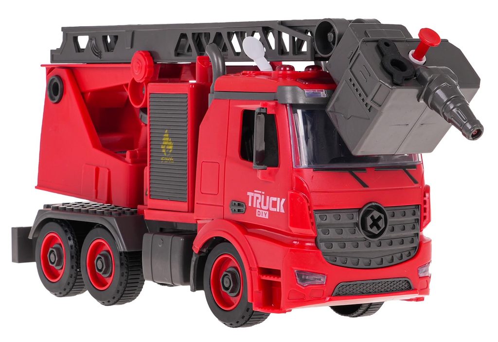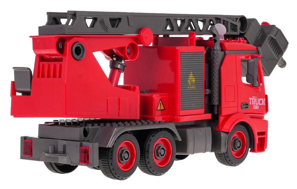 Interaktivní hasičské auto s vodní funkcí je ideální hračka pro děti od 3 let, která přináší realistický zážitek z hasičského zásahu. Sada obsahuje šroubovák s vyměnitelnými hroty, díky kterému si děti mohou rozebrat a opět složit hasičský vůz, což podporuje jejich technické dovednosti. Hasičský vůz má pohon předních kol a na jeho střeše jsou dvě blikající světla a funkční tlačítka.Tlačítka aktivují zvuky jako alarm, zapalování motoru, couvání a houkačka, což dodává autentický zážitek. Výložník vozu lze ručně zvedat, spouštět, vysouvat a otáčet o 360 stupňů. V závěrečné fázi, po naplnění nádrže vodou, může požární hadice stříkat vodu, když dítě stiskne speciální tlačítko. Hračka je napájena třemi AG13 bateriemi, které jsou součástí balení. Tento interaktivní hasičský set rozvíjí dětskou představivost, jemnou motoriku a poskytuje hodiny zábavy při simulaci skutečných hasičských akcí.