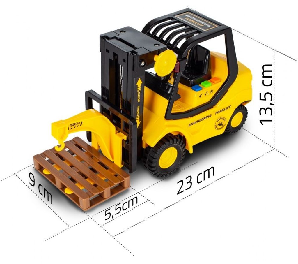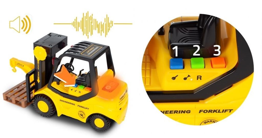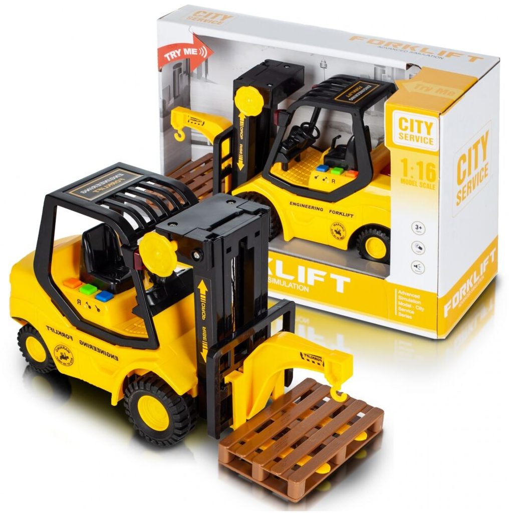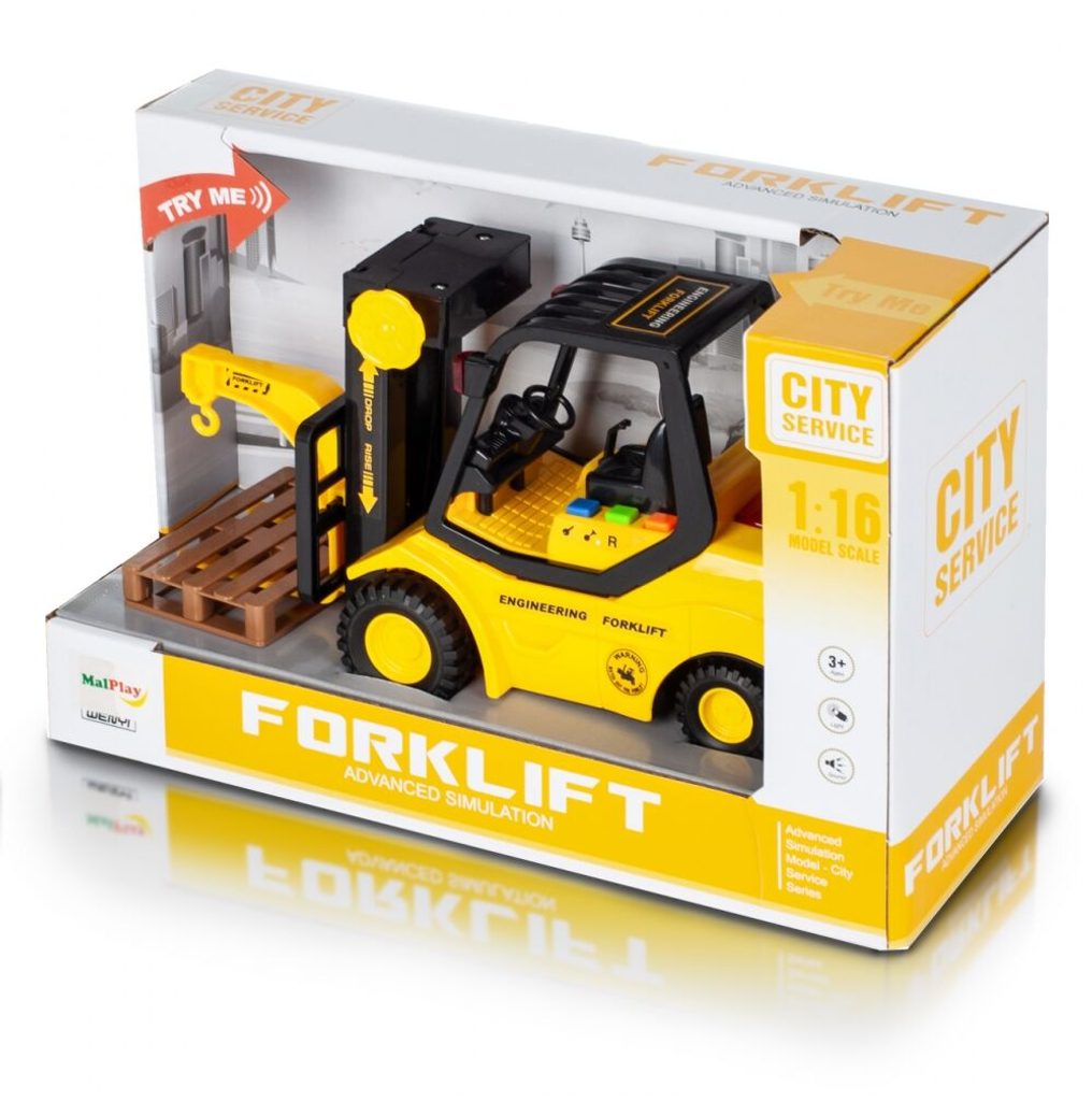 Vysokozdvižný vozík City Service je ideální hračkou pro rozvoj manuální zručnosti a logického myšlení. Je vybaven tlačítky, které spouští zvuky startování motoru, couvání a troubení. Pohon kol Friction Power - pohybuje se tlačením po hladké ploše. Každý zvuk doprovází blikající světýlka. Hračka je určena pro děti od 36 měsíců věku.