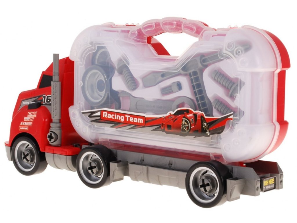 Šroubovací nákladní autíčko na baterie Container Truck je ideální hračkou pro rozvoj manuální zručnosti a logického myšlení. Lze ho rozebrat na jednotlivé díly a šrouby a poté zase složit pomocí přiloženého šroubováku a oboustranného klíče. Nářadí a příslušenství je uloženo v praktickém průhledném kufříku, který slouží jako korba autíčka. Zábava je tak nekonečná. Zmáčknutím tlačítka se spustí zvuk jedoucího auta. Hračka je určena pro děti od 36 měsíců věku.