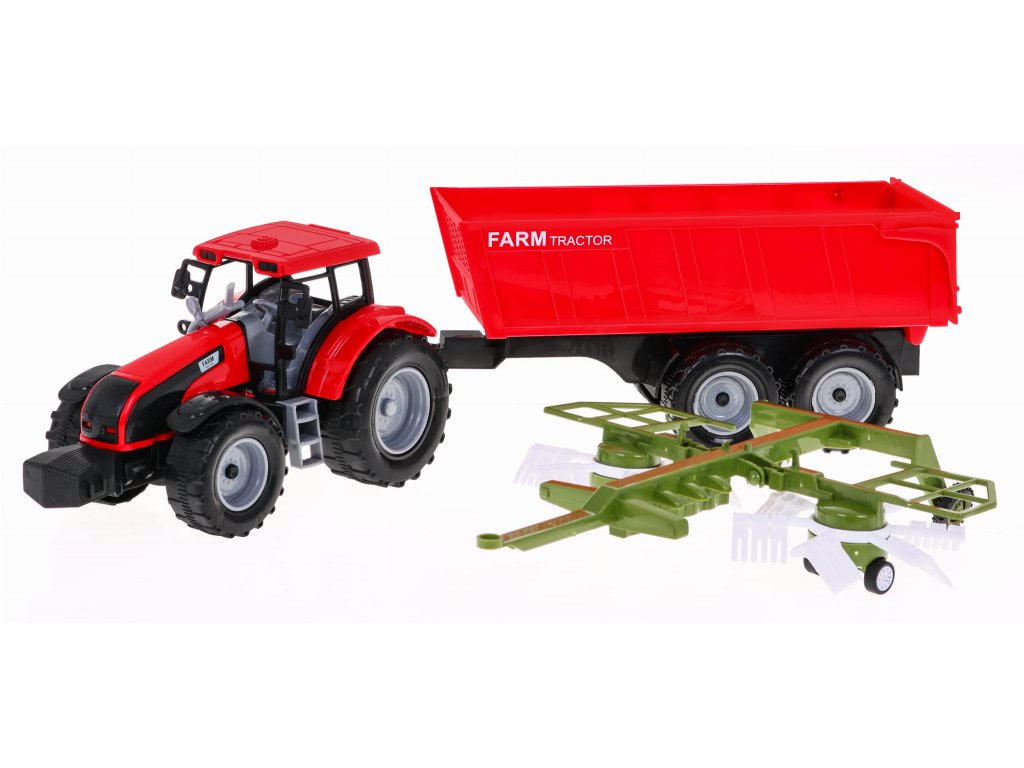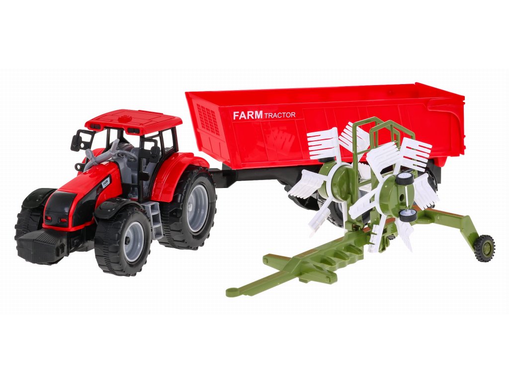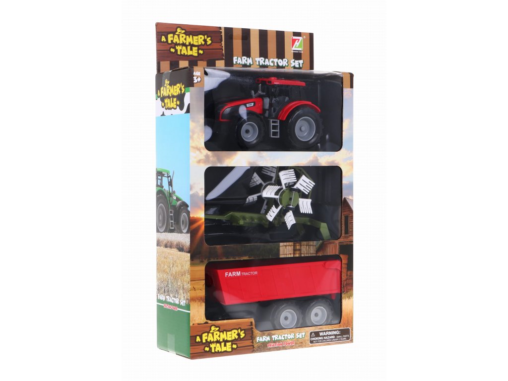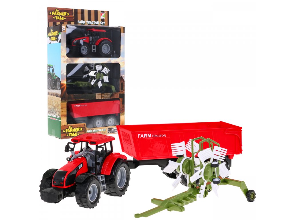 Dětský traktor s přívěsem Farmers Tale ideální hračkou pro rozvoj manuální zručnosti a logického myšlení. Součástí sestavy je traktor se zadním pohonem, návěs který lze ručně zvedat a vyklápět a také speciální stroj na obracení sena. Zábava malého farmáře je tak nekonečná. Hračka je určena pro děti od 36 měsíců věku.