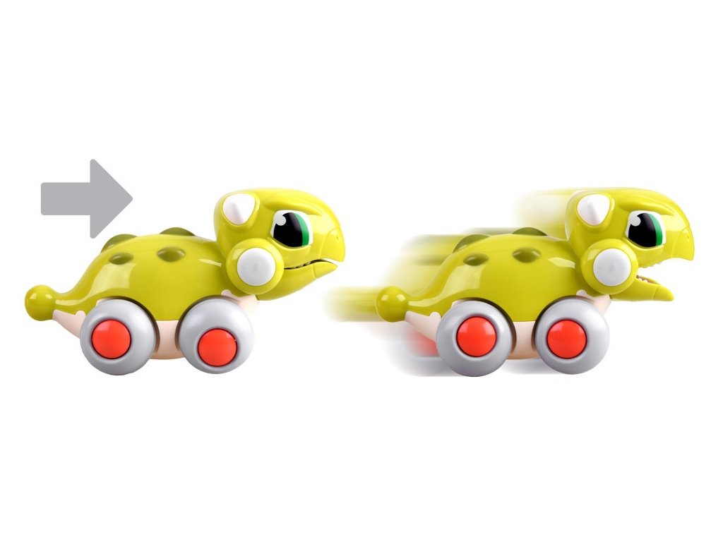 Zábavný barevný dinosaurus na setrvačník Huile Toys je ideální hračkou pro ty nejmenší děti. Během jízdy se otevírá a zavírá tlamička. Pohon zajišťuje setrvačník, stačí pouze autíčko. Hračka je určena pro děti od 12 měsíců věku.