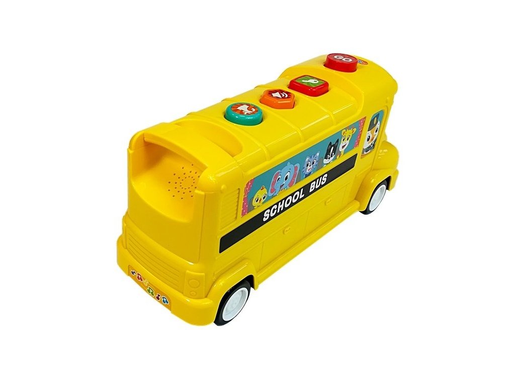 Interaktivní naučný autobus School Bus se zvuky Huile Toys je ideální hračkou pro ty nejmenší děti. Umožní dítěti rozvíjet hmat, zrak, sluch a také angličtinu. Boční strana autobusu je vybavena tlačítky s kompletní abecedou. Autobus má několik režimů hry. V prvním se přehrávají názvy čísel, písmen a tvarů v angličtině, ve druhém se zmáčknutím tlačítek spouští zvuky autobusu jako je přidávání plynu, houkání a zvuk motoru. Třetí režim je kvízový, kdy dítě musí vybrat zmáčknutím tlačítka správný název, který se předtím ozve z reproduktoru. Hračka je určena pro děti od 18 měsíců věku.