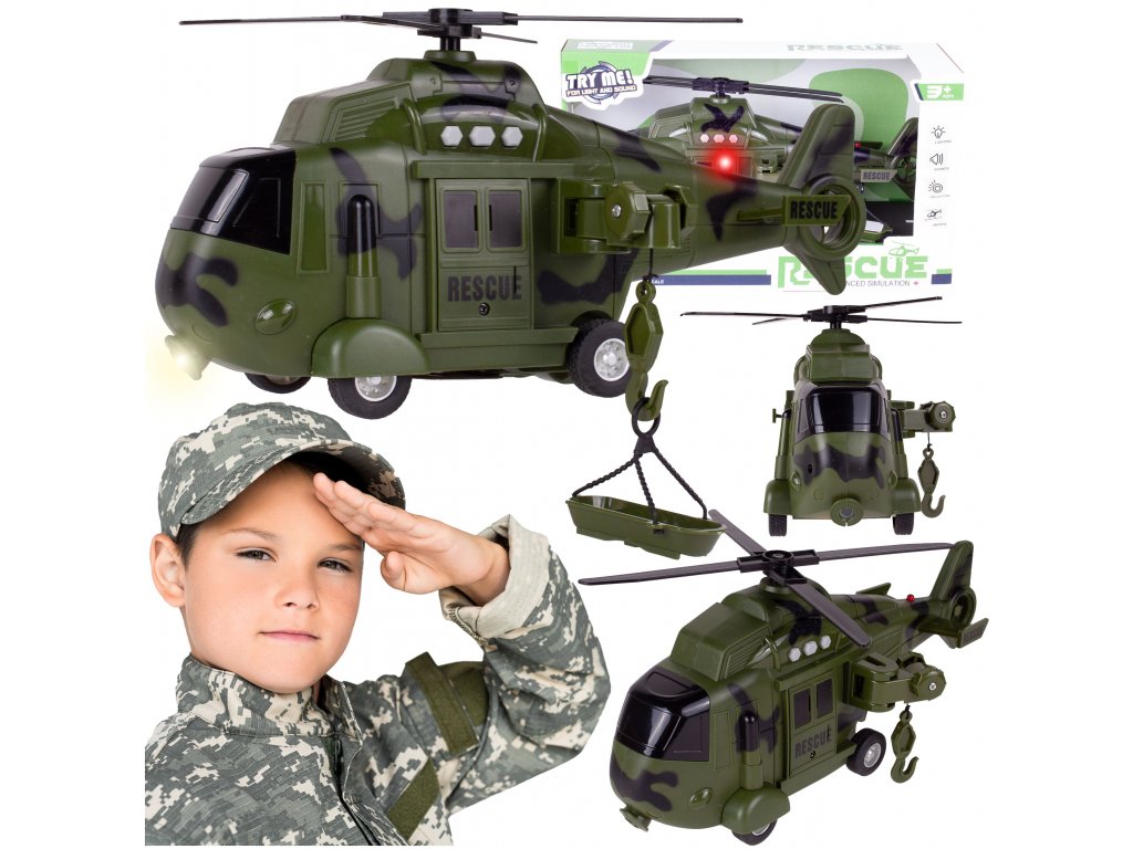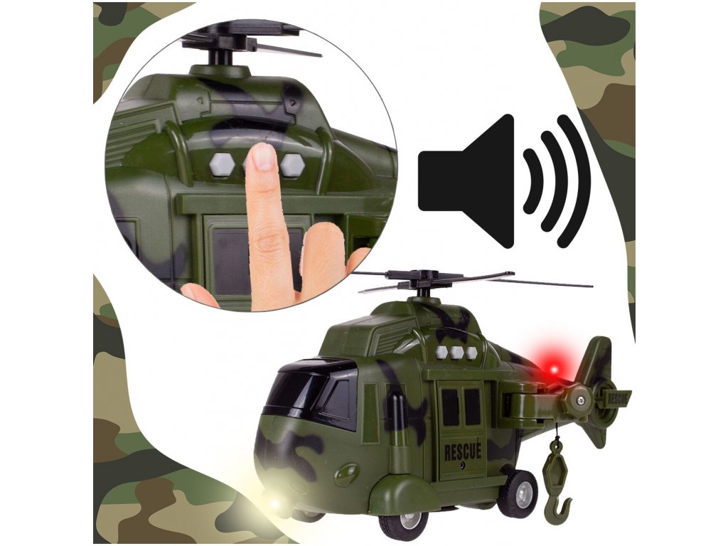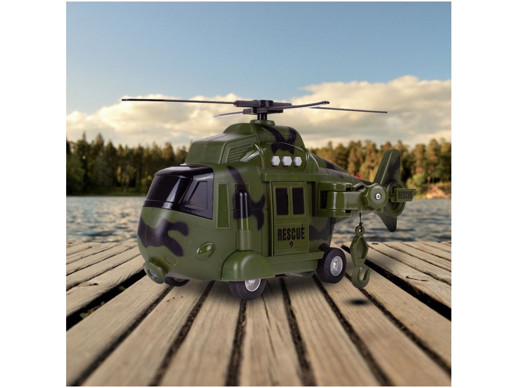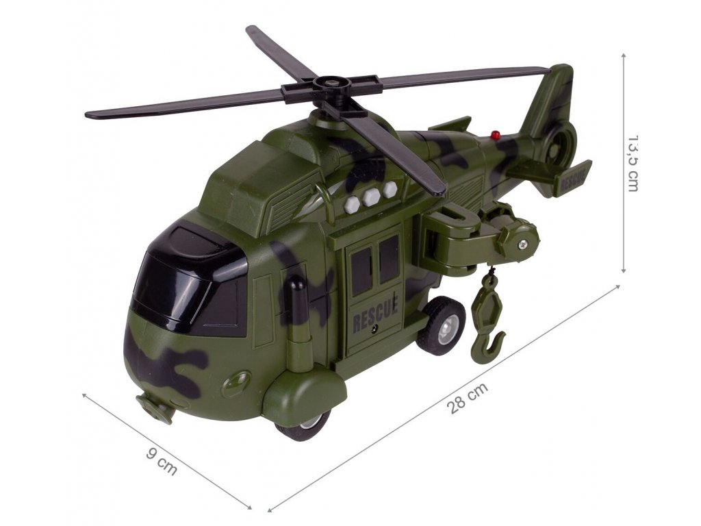 Interaktivní vojenský vrtulník s pohonem kol Army Rescue je ideální hračkou pro rozvoj manuální zručnosti a logického myšlení. Je vybaven zvukovými efekty a také předním a zadním světýlkem. Součástí helikoptéry je také lano s háčkem a záchranné lehátko. Pohon zajišťuje systém Friction Power kdy se helikoptéra rozpohybuje tlačením po hladkém povrchu. Hračka je určena pro děti od 36 měsíců věku.