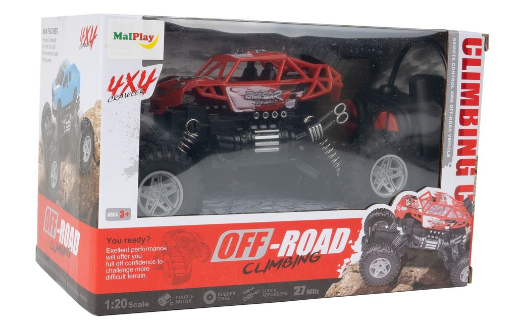Terénní autíčko Monster Car na dálkové ovládání s dálkovým ovládáním 27MHz umožnuje jízdu dopředu a dozadu, zatáčí doprava a doleva. Je osazeno gumovými koly s velmi dobrou přilnavostí a je vybaveno silnými tlumiči nárazů. Součástí balení je 3,7V lithiová baterie napájení autíčka s USB nabíječkou a dálkový ovladač. Dálkové ovládání je napájeno bateriemi, které nejsou součástí balení. Autíčko je vyrobeno z plastu a je určeno pro děti od 3 let.