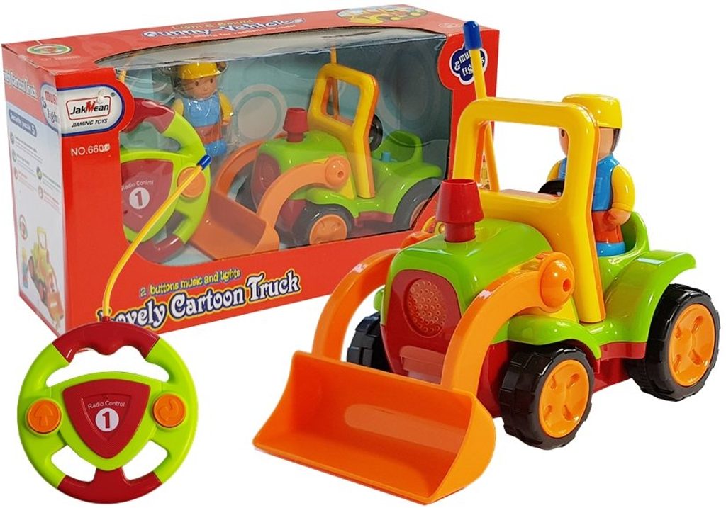 Autíčko na dálkové ovládání Bagr je určeno pro ty nejmenší děti. Velmi snadno se ovládání pomocí ovladače ve tvaru volantu. Je vybaveno dvěma tlačítky, které ovládají jízdu. Hlavní vypínač je umístěn ve spodní části autíčka. Dálkové ovládání i autíčko jsou napájeny AA1,5V bateriemi, které nejsou součástí balení. Součástí balení je i postavička řidiče. Autíčko je vyrobeno z plastu, má certifikaci CE a je určeno pro děti od 18 měsíců věku.