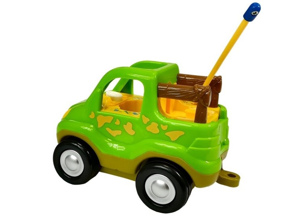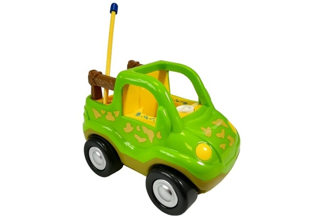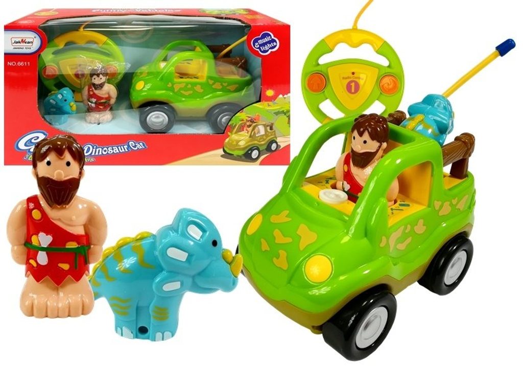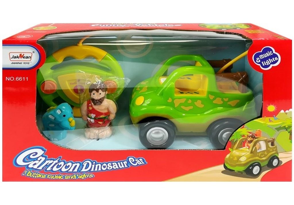 Autíčko na dálkové ovládání Dino Car je určeno pro ty nejmenší děti. Velmi snadno se ovládání pomocí ovladače ve tvaru volantu. Je vybaveno dvěma tlačítky, které ovládají jízdu. Hlavní vypínač je umístěn ve spodní části autíčka. Dálkové ovládání i autíčko jsou napájeny AA1,5V bateriemi, které nejsou součástí balení. Součástí balení je i postavička pralesního mužíka a figurka dinosaura. Autíčko je vyrobeno z plastu, má certifikaci CE a je určeno pro děti od 18 měsíců věku.