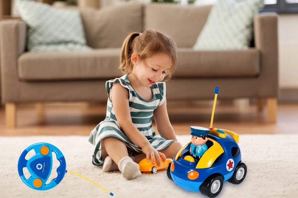 Autíčko na dálkové ovládání Funny Police je určeno pro ty nejmenší děti. Ovládání je velmi snadné a to pomocí ovladače ve tvaru volantu. Součástí balení je i postavička policisty, jeho zmáčknutím se spustí klakson a melodie. Zvuky startujícího auta a světla se spouštějí tlačítkem na volantu. Hlavní vypínač je umístěn ve spodní části autíčka. Dálkové ovládání i autíčko jsou napájeny AA1,5V bateriemi, které nejsou součástí balení. Autíčko je vyrobeno z plastu, má certifikaci CE a je určeno pro děti od 18 měsíců věku.