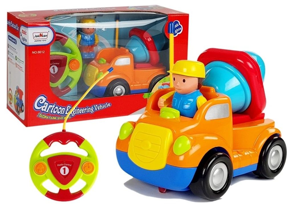 Autíčko na dálkové ovládání Míchačka je určeno pro ty nejmenší děti. Velmi snadno se ovládání pomocí ovladače ve tvaru volantu. Je vybaveno celkem dvěma tlačítky, které ovládají jízdu. Hlavní vypínač je umístěn ve spodní části autíčka. Dálkové ovládání i autíčko jsou napájeny AA1,5V bateriemi, které nejsou součástí balení. Součástí balení je i postavička řidiče. Autíčko je vyrobeno z plastu, má certifikaci CE a je určeno pro děti od 18 měsíců věku.
