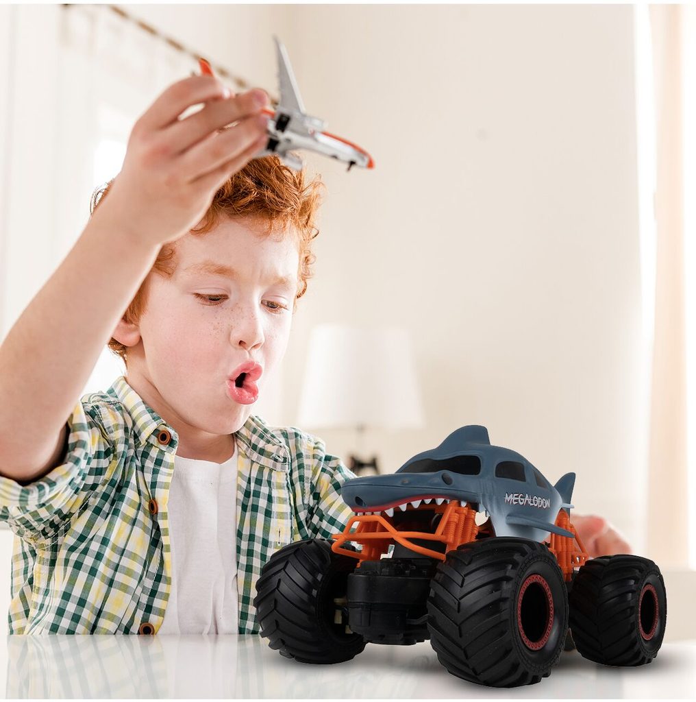 Terénní autíčko Shark Car na dálkové ovládání s dálkovým ovládáním 27MHz zaujme kabinou v provedení žraloka. Umožnuje jízdu dopředu a dozadu, zatáčí doprava a doleva. Je osazeno velkými gumovými koly s velmi dobrou přilnavostí. Dálkové ovládání i autíčko jsou napájeny bateriemi, které nejsou součástí balení. Autíčko je vyrobeno z plastu a je určeno pro děti od 6 let.