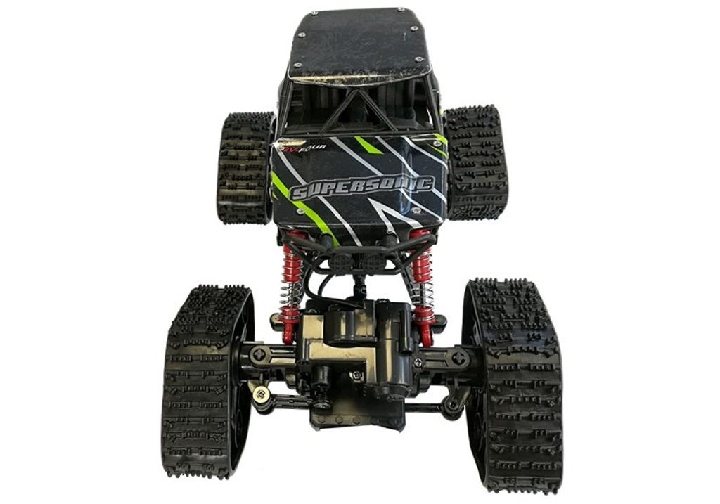 Autíčko s výměnnými koly, dálkovým ovládáním 2,4G a zvýšeným podvozkem Rock Climber umožnuje jízdu dopředu a dozadu, zatáčí doprava a doleva. Je osazeno gumovými koly s velmi dobrou přilnavostí, které lze vyměnit za pásy a je vybaveno silnými tlumiči nárazů. Autíčko je napájeno akumulátorem, který se dobíjí USB nabíječkou a dálkové ovládání je napájeno bateriemi, které nejsou součástí balení. Autíčko je vyrobeno z odolného plastu a má certifikaci CE.