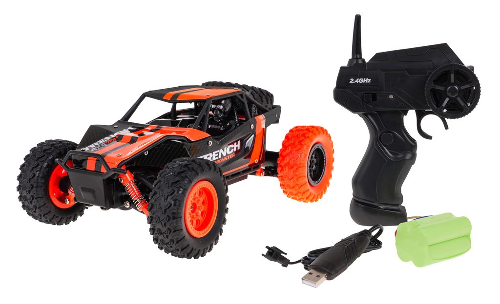 Terénní autíčko Desert Crawler s dálkovým ovládáním 2,4GHz se zvýšeným podvozkem umožnuje jízdu dopředu a dozadu, zatáčí doprava a doleva. Je osazeno velkými gumovými koly s velmi dobrou přilnavostí a je vybaveno silnými tlumiči nárazů. Autíčko je napájeno 4,8V 700mAh akumulátorem, dálkové ovládání je napájeno bateriemi, které nejsou součástí balení. Autíčko je vyrobeno z odolného plastu a má certifikaci CE.