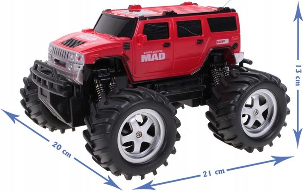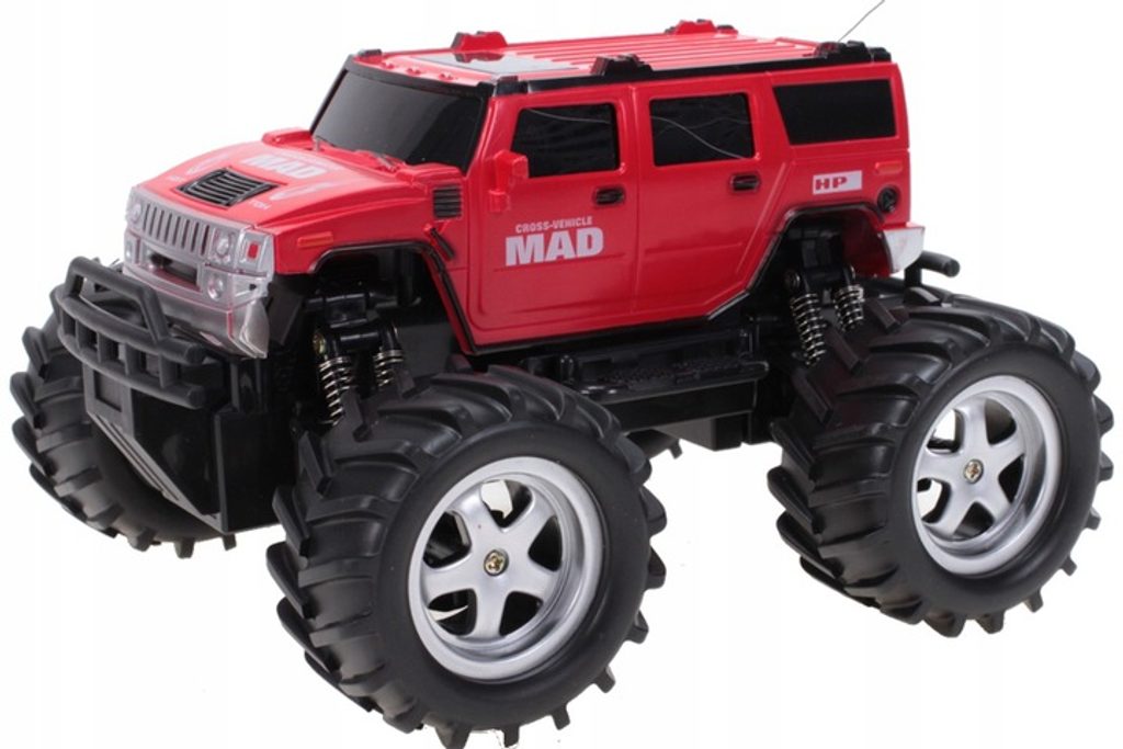 Off-road autíčko Mad Monster Truck s dálkovým ovládáním 27MHz a zvýšeným podvozkem umožnuje jízdu dopředu a dozadu, zatáčí doprava a doleva. Je osazeno gumovými koly o průměru 8 cm s velmi dobrou přilnavostí a je vybaveno silnými tlumiči nárazů. Součástí balení je baterie napájení autíčka a dálkový ovladač. Autíčko je vyrobeno z odolného plastu a má certifikaci CE.