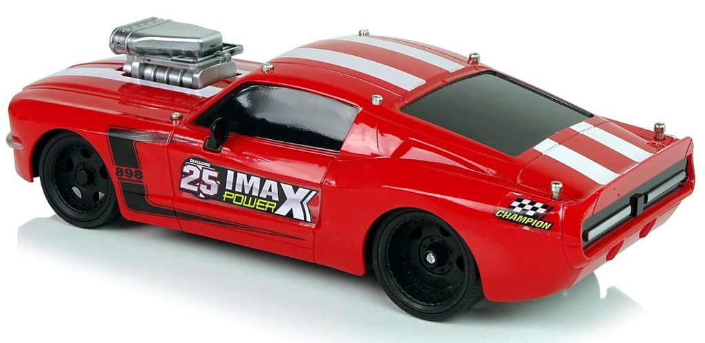 Autíčko na dálkové ovládání Muscle Car s dálkovým ovládáním 27 MHz ve stylu amerického sportovního vozu umožnuje jízdu dopředu a dozadu, zatáčí doprava a doleva. Je osazeno gumovými koly s velmi dobrou přilnavostí a v přední kapotě má imitaci silného motoru. Součástí balení je dálkový ovladač s dvěma kolečky. Dálkové ovládání je napájeno bateriemi, které nejsou součástí balení. Autíčko je vyrobeno z odolného plastu a má certifikaci CE.