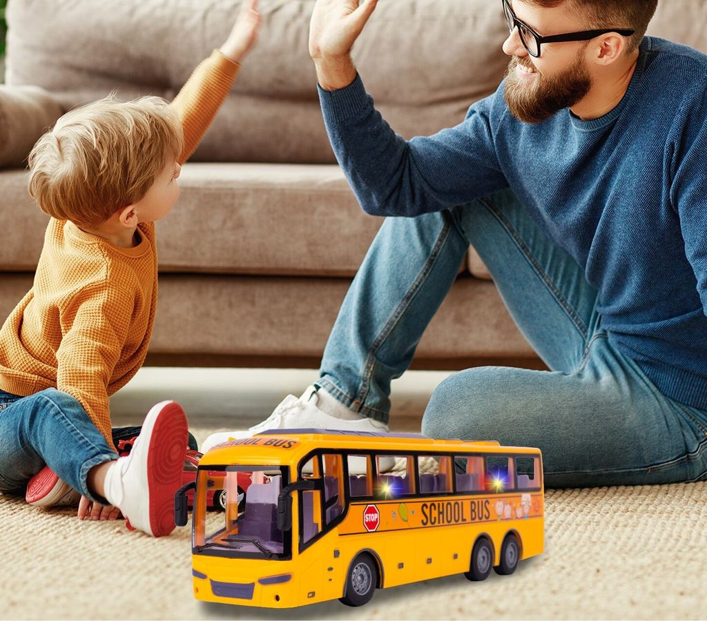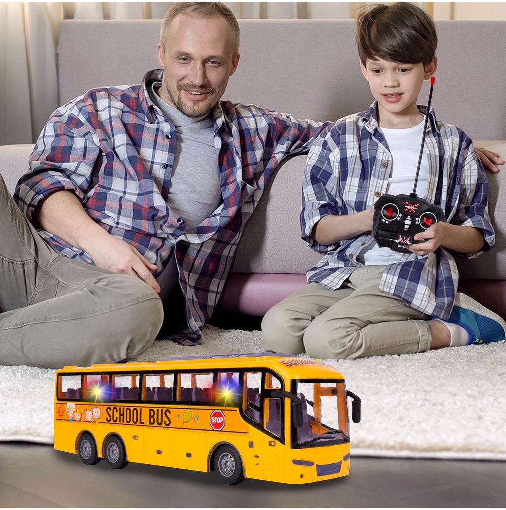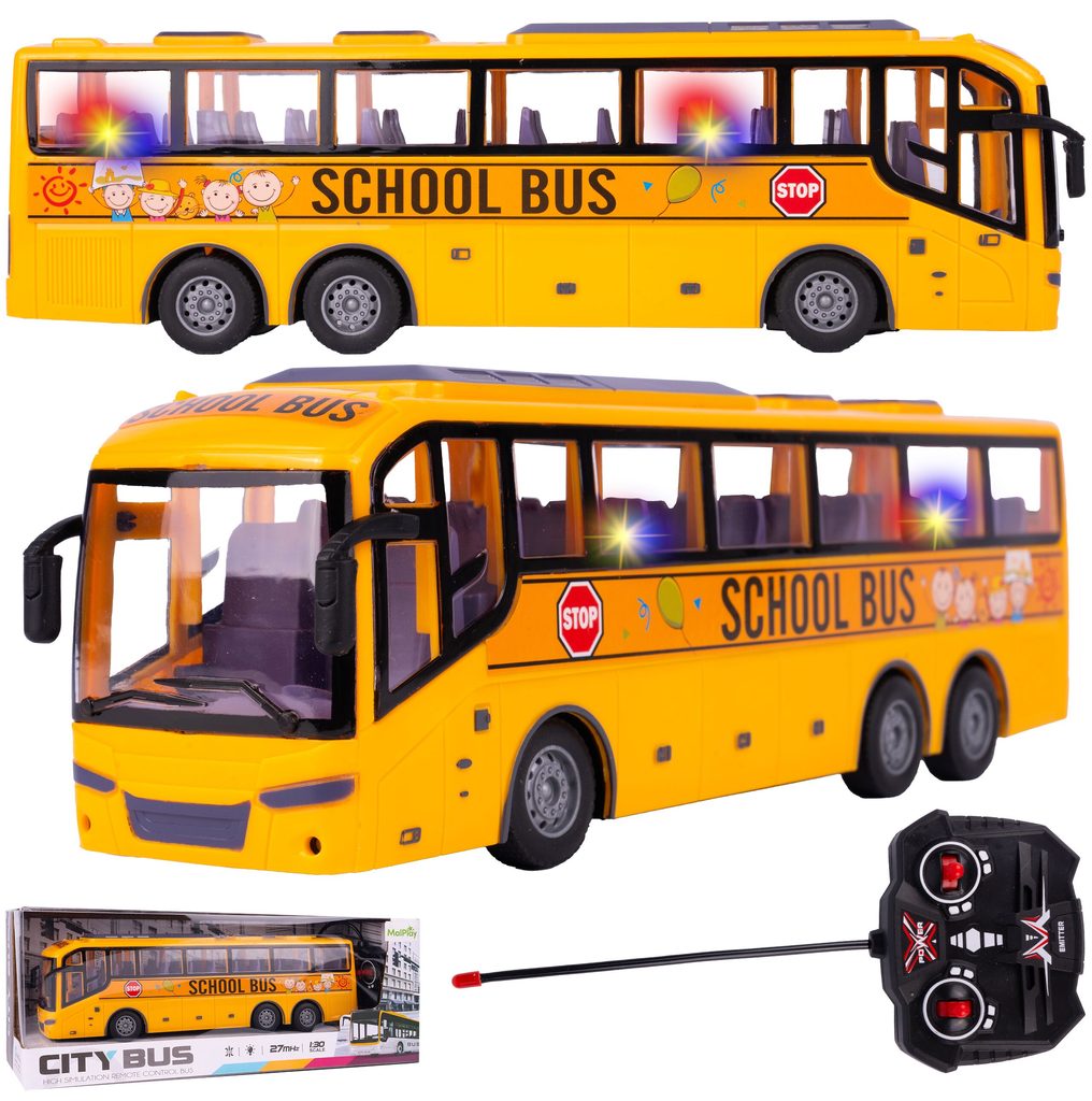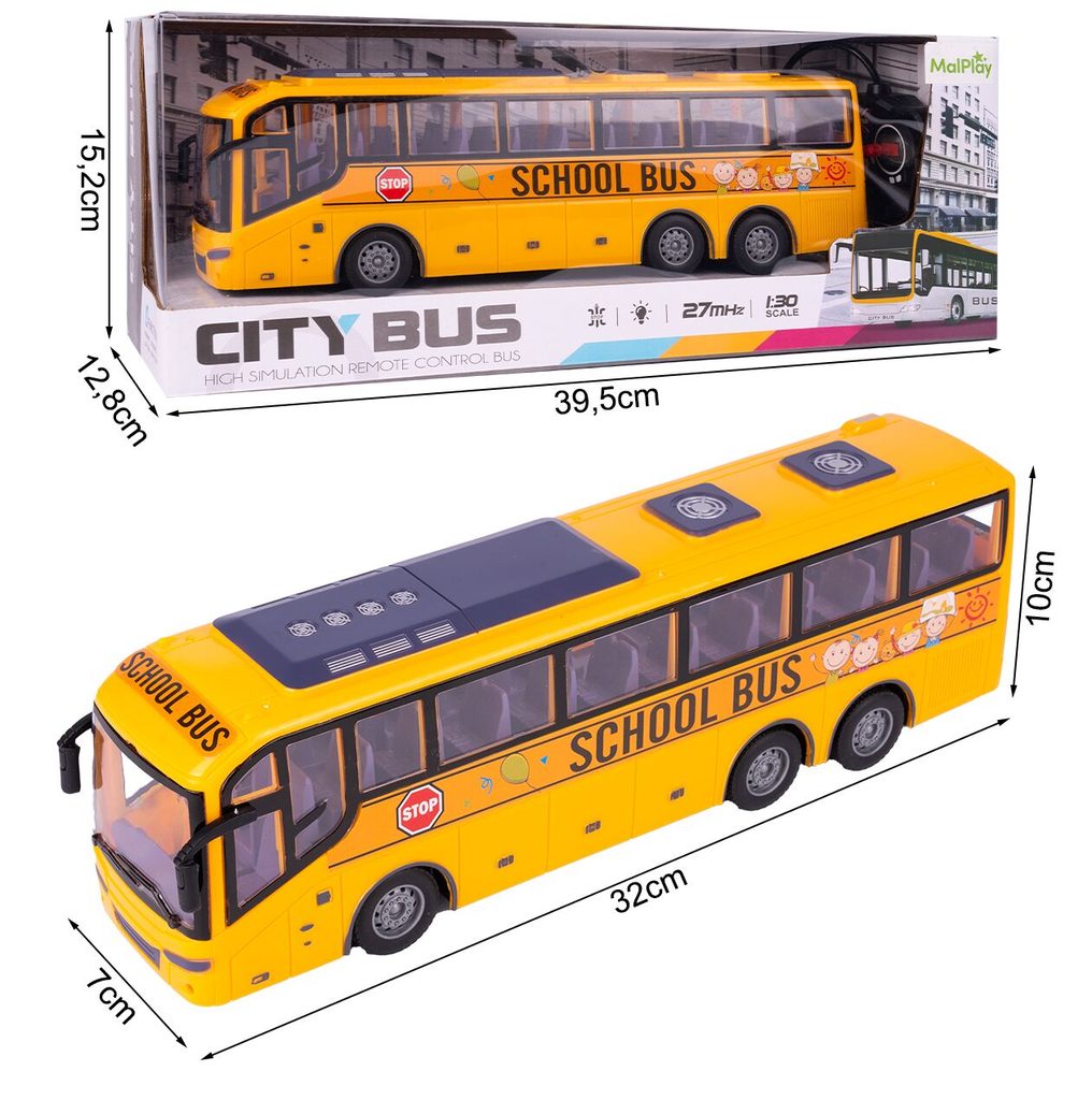 Autobus s dálkovým ovládáním 27MHz umožňuje jízdu dopředu a dozadu a zatáčí doprava a doleva. Během jízdy svítí přední světla. Uvnitř jsou umístěna sedadla pro cestující a vpředu jsou potom stylová zpětná zrcátka. Ovládání je velmi jednoduché pomocí ovladače s páčkami a tlačítky. Dálkové ovládání i autobus jsou napájeny bateriemi, které nejsou součástí balení. Autobus je vyrobený z plastu a má certifikaci CE.