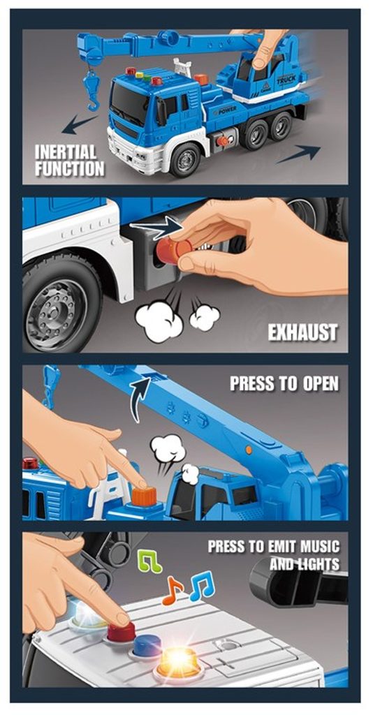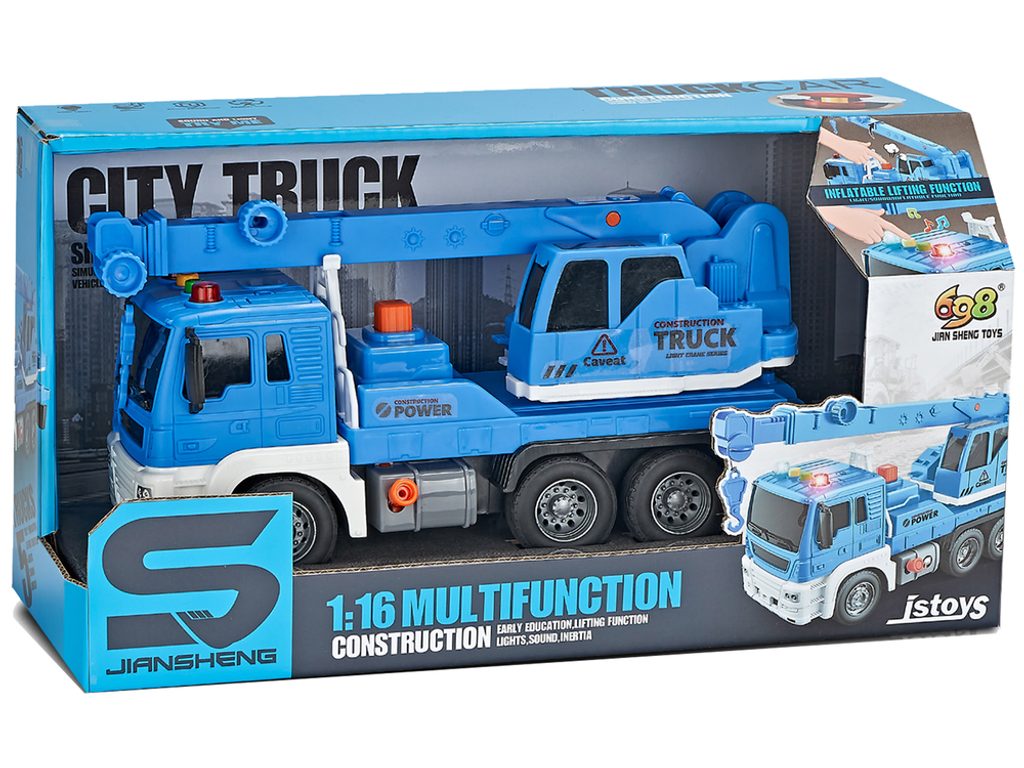 Autojeřáb City Truck je ideální hračkou pro rozvoj manuální zručnosti a logického myšlení. Je vybaven tlačítky, které spouští zvukové a světelné efekty. Rameno jeřábu je pohyblivé a kabina se dá otáčet. Hračka je určena pro děti od 36 měsíců věku.