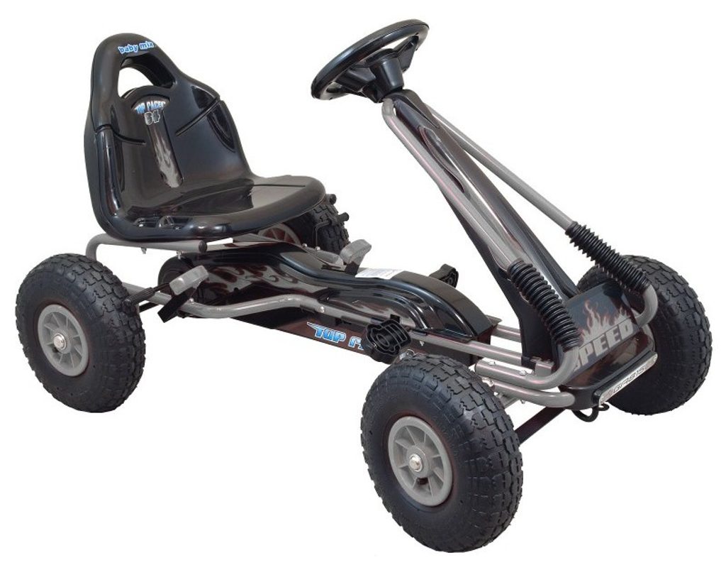 Baby Mix dětská šlapací motokára Formule 618 se širokými nafukovacími koly o průměru 25 cm(přední) a 22 cm(zadní) je určena pro děti od 3 let a hmotnosti 25 kg. Pohon zajištuje řetěz, který je zabezpečen ochranným krytem. Pohodlné sedadlo lze posouvat směrem k volantu ve třech polohách. Motokára je vybavena ruční brzdou na dvou kolech. Šlapátka mají na povrchu protiskluzovou úpravu. Rám motokáry je vyroben z kvalitního kovu.