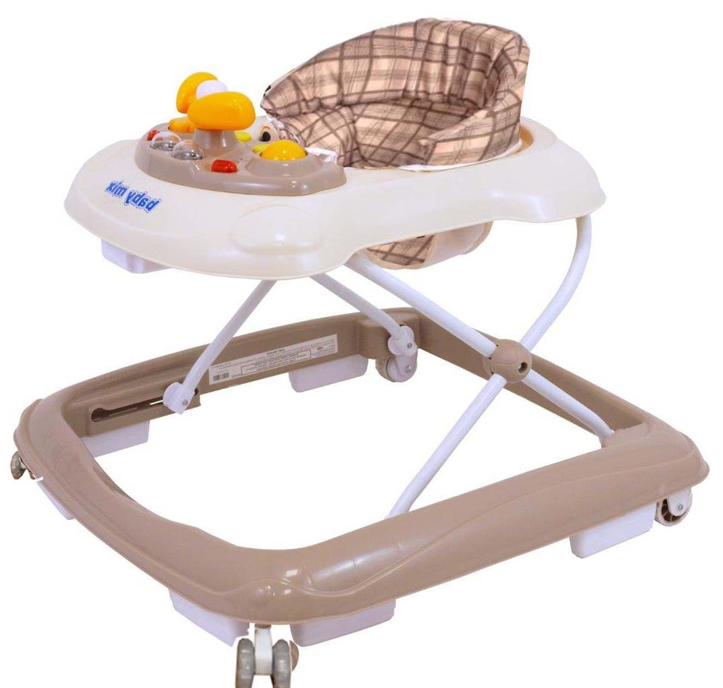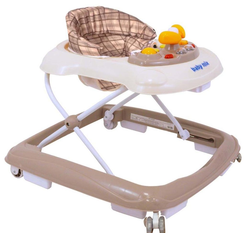 Dětské chodítko Baby Mix s interaktivním hracím panelem je určeno pro děti od 6 měsíců věku. Sedátko je ergonomicky tvarované a zajišťuje tak správné držení páteře. Potah lze sejmout a prát v pračce.  V přední části je umístěný interaktivní hrací panel s otočným volantem, klaksonem, melodiemi a světýlky. Přední silikonová kolečka chodítka jsou otočná a jsou vyrobeny z materiálu, který nepoškrábe podlahu. Splňuje veškeré normy které jsou vyžadovány pro dětské chodítka.