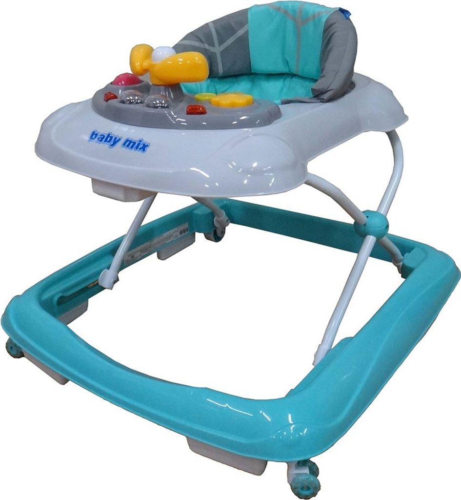 Dětské chodítko Baby Mix s interaktivním hracím panelem je určeno pro děti od 6 měsíců věku. Sedátko je ergonomicky tvarované a zajišťuje tak správné držení páteře. Potah lze sejmout a prát v pračce.  V přední části je umístěný interaktivní hrací panel s otočným volantem, klaksonem, melodiemi a světýlky. Přední silikonová kolečka chodítka jsou otočná a jsou vyrobeny z materiálu, který nepoškrábe podlahu. Splňuje veškeré normy které jsou vyžadovány pro dětské chodítka.