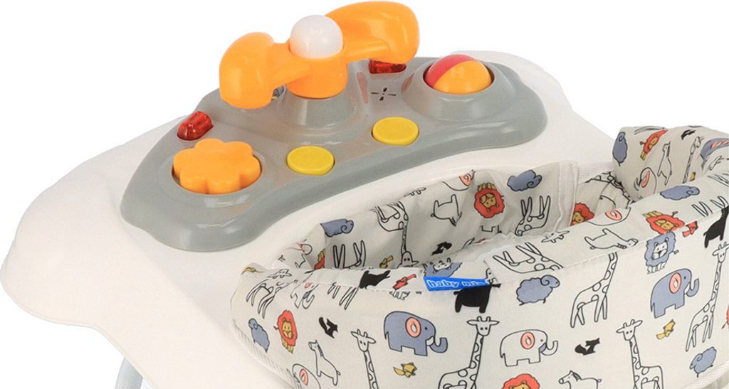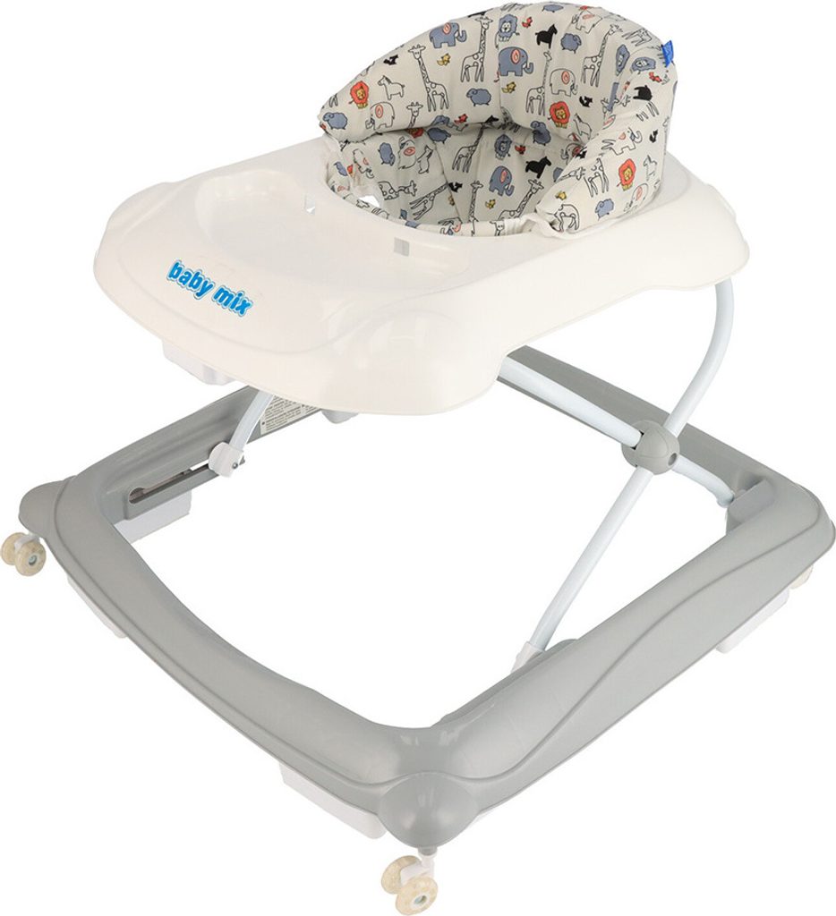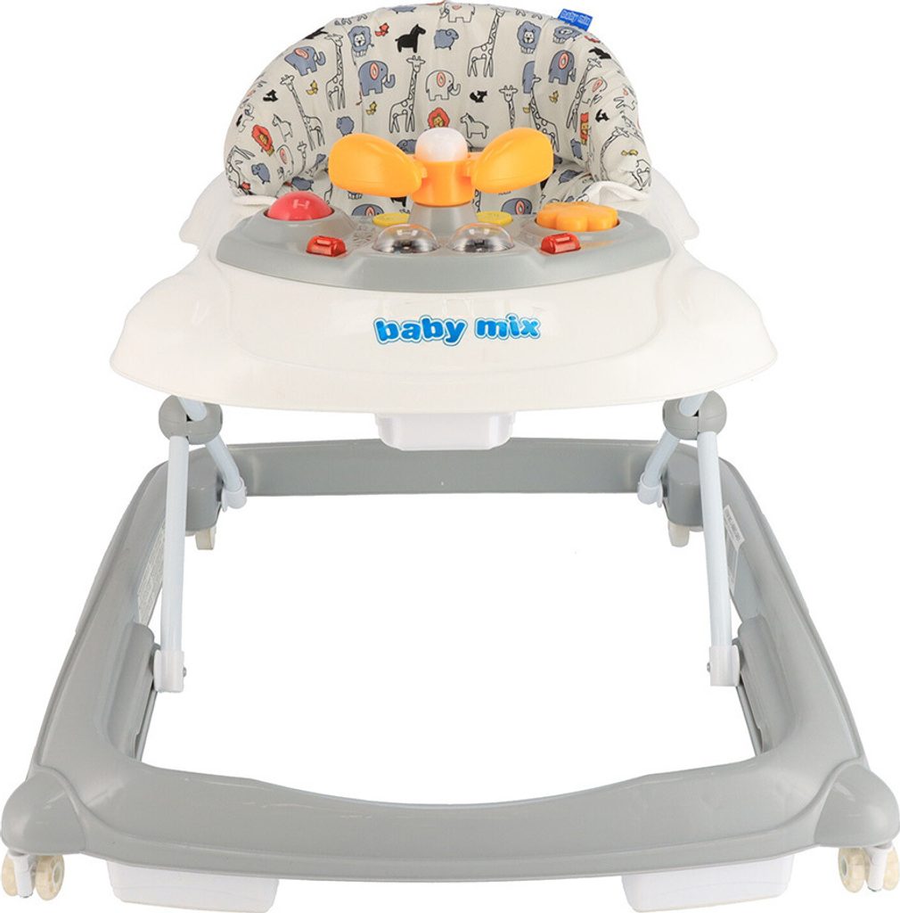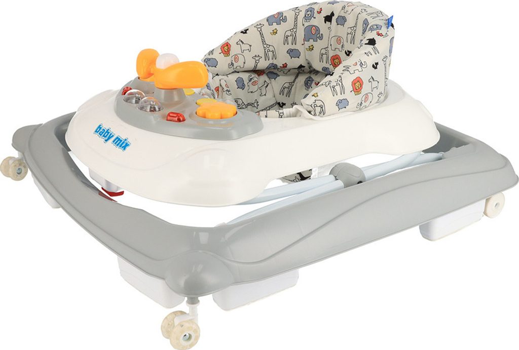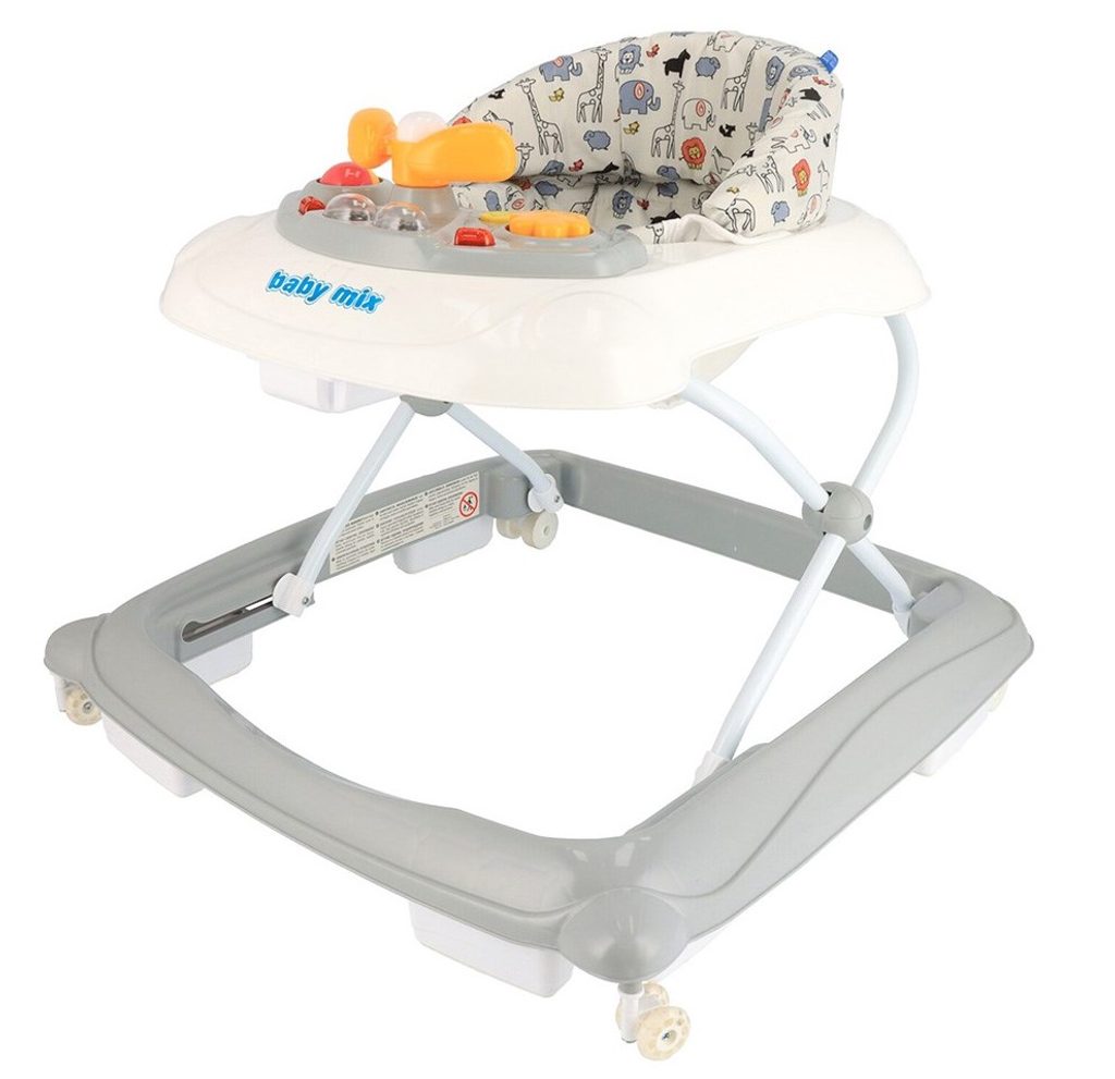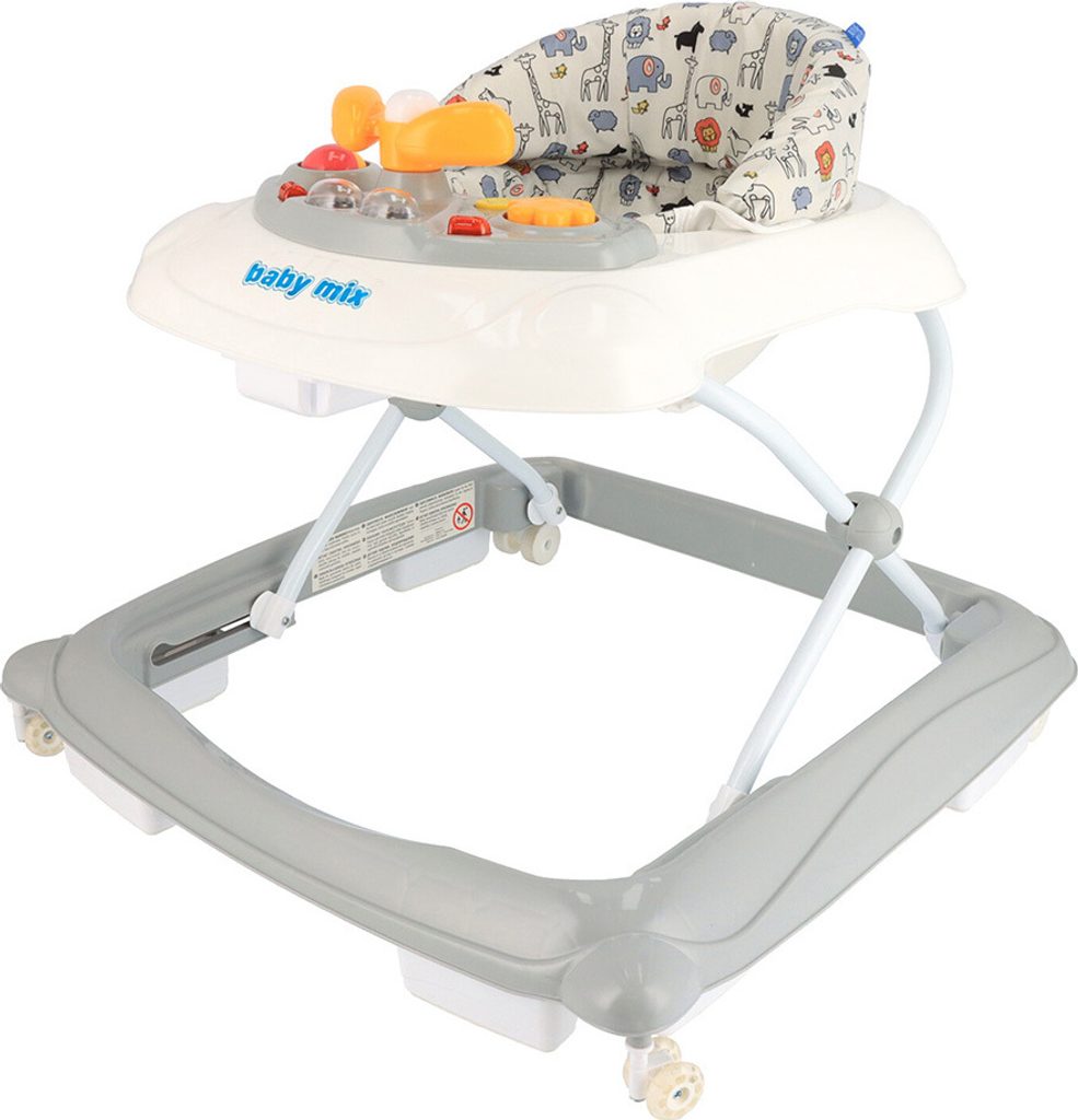 Dětské chodítko Baby Mix s interaktivním hracím panelem je určeno pro děti od 6 měsíců věku. Sedátko je ergonomicky tvarované a zajišťuje tak správné držení páteře. Potah lze sejmout a prát v pračce.  V přední části je umístěný interaktivní hrací panel s otočným volantem, klaksonem, melodiemi a světýlky. Přední silikonová kolečka chodítka jsou otočná a jsou vyrobeny z materiálu, který nepoškrábe podlahu. Splňuje veškeré normy které jsou vyžadovány pro dětské chodítka.