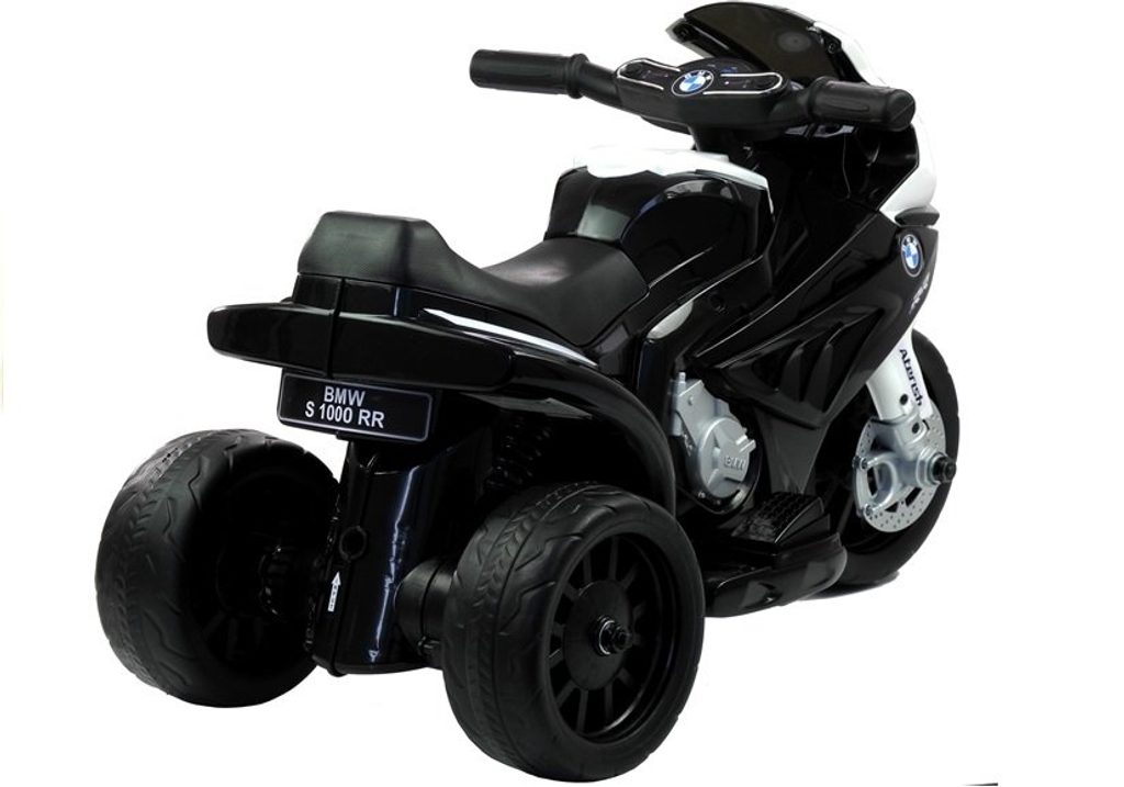 Stylová elektrická tříkolová motorka BMW RR S1000. Všechna kola jsou široká s gumovým lemem. Pohon je aktivován plynovým pedálem umístěným v opěrce nohy. Po uvolnění pedálu se motorka zastaví. Osvětlení zajištuje přední LED světlo. Motorka je vyrobena z kvalitního materiálu a je velmi stabilní. Hrát si s ní je absolutně bezpečné.