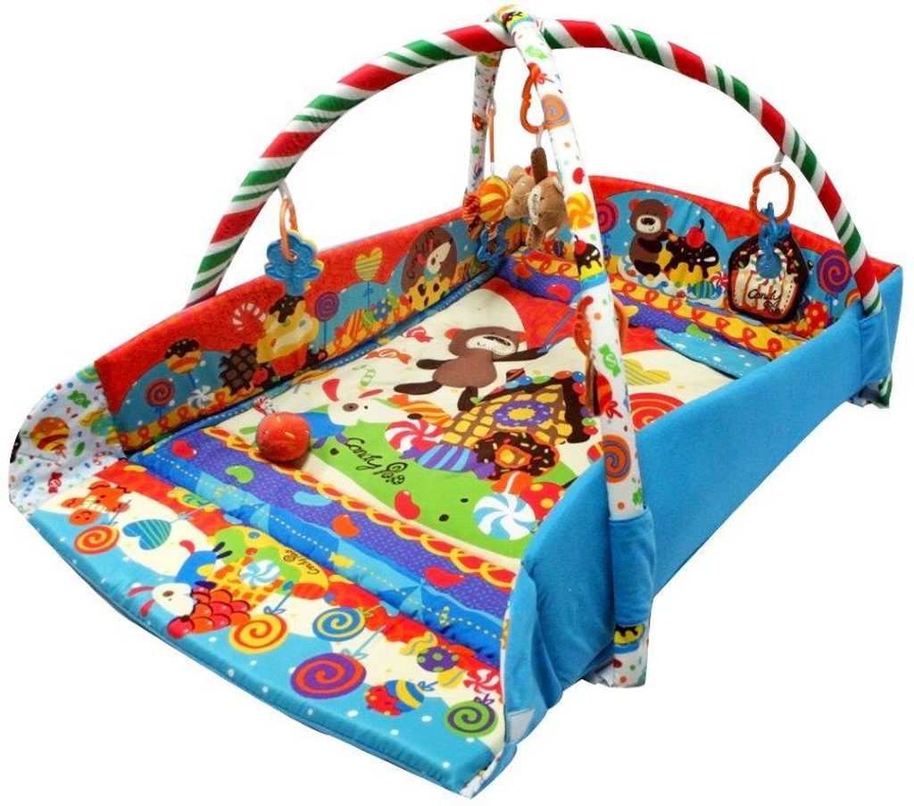 Baby Mix barevná hrací deka 2v1 Zvířecí párty je určena Vašemu dítěti už od narození. Součástí deky jsou dvě hrazdičky se zavěšenými hračkami. V první fázi života si dítě hraje na zádech a může pozorovat zavěšené hračky, které vzbuzují jeho zvědavost. Pro dítě, které již zvládne větší pohyby lze boční stěny jednoduše zvednut a vytvořit tak bezpečnou ohrádku pro hraní. Hračky lze odejmout a dítě si s nimi může hrát samostatně. Deka je vyrobena ze stálobarevného materiálu. Po rozložení má rozměry 110 x 90 cm.