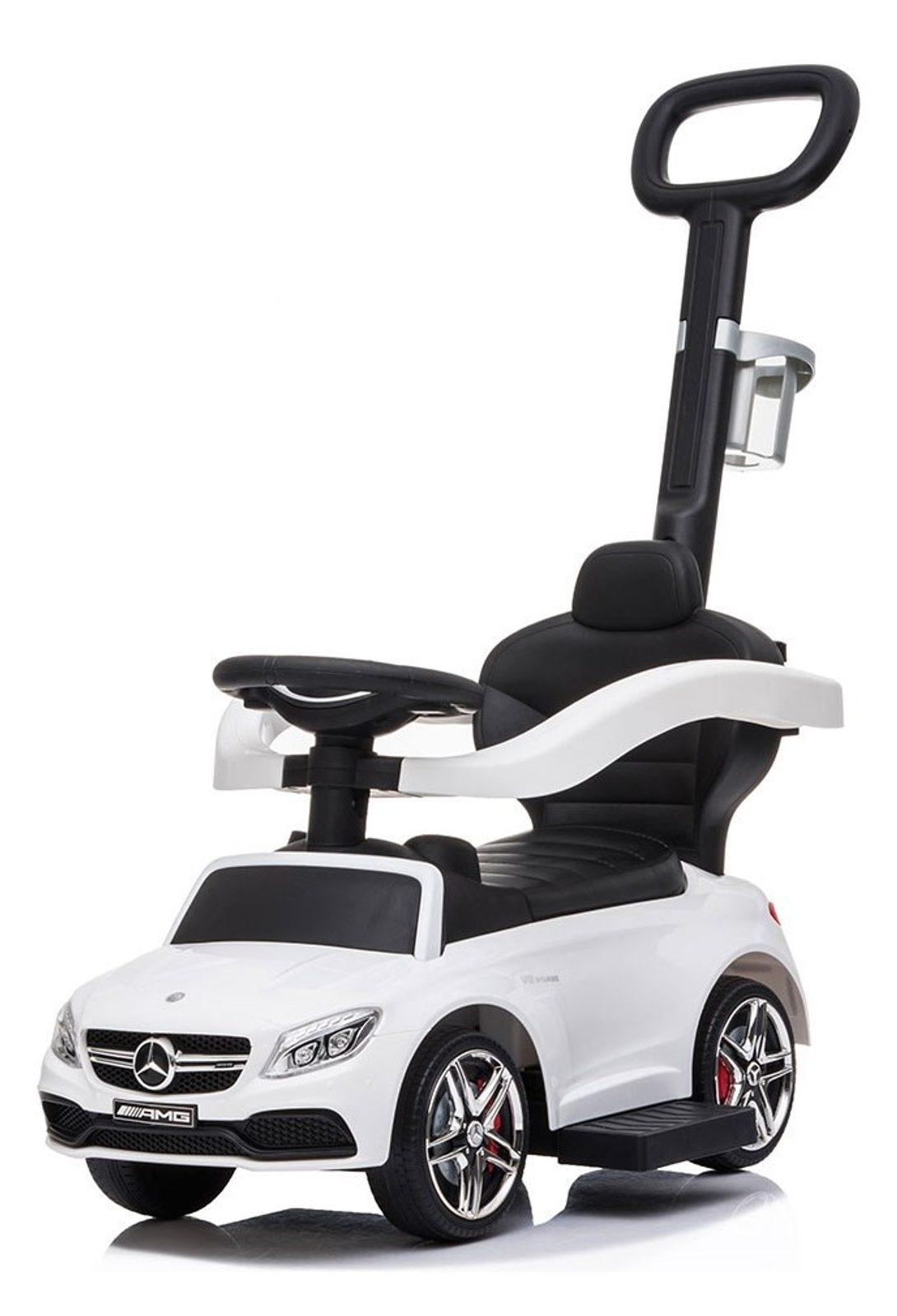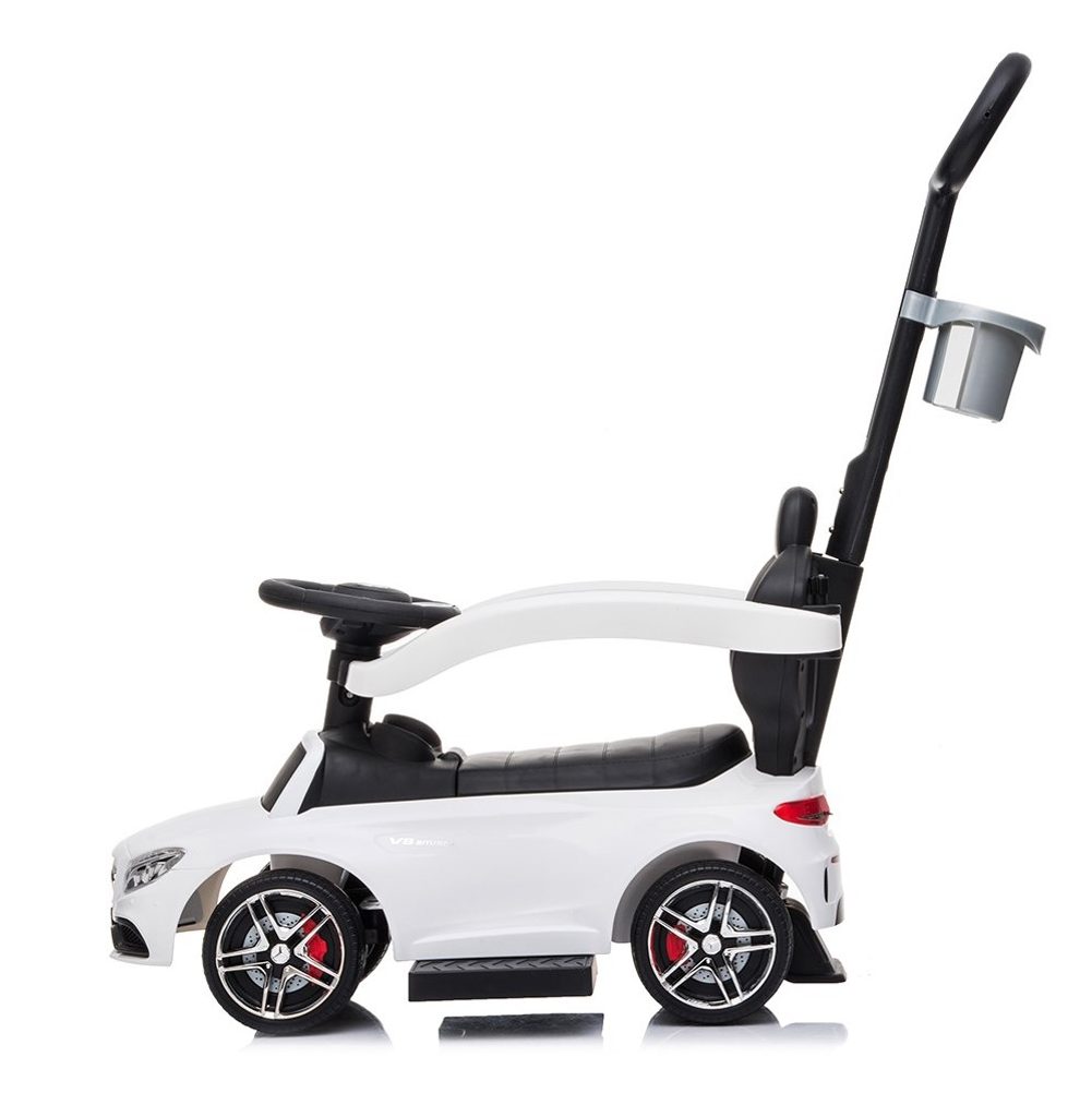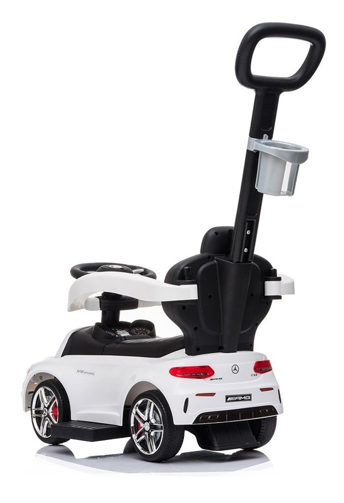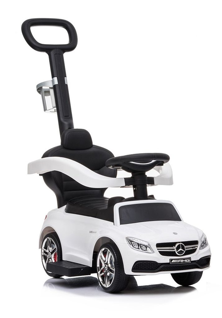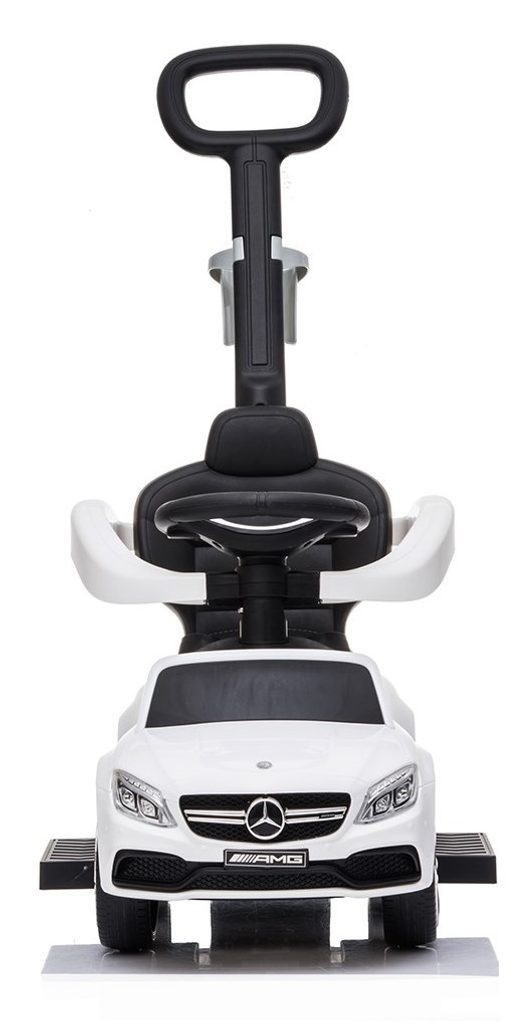 Multifunkční odrážedlo Baby Mix 3v1 Mercedes Benz AMG C63 je vybaveno multifunkčním volantem s melodiemi a také zvukem klaksonu. Zábava na něm pomáhá k rozvoji manuálních schopností dítěte, rozvoji sluchu, zraku i hmatu. Jeho sportovní vzhled upoutá pozornost nejen každého dítěte ale i rodičů. S autíčkem si děti užijí spoustu legrace a zábavy protože má nenapodobitelný vzhled skutečného Mercedesu, komfortní široké sedadlo s otevíracím úložným prostorem, volant, kvalitní plastová kola a pohodlnou a zároveň pevnou vodící tyč s držákem na nápoje. Vodící tyč, opěrky na ruce a podnožky lze odejmout, a tím dítě využije autíčko jako klasické odrážedlo. Určeno pro děti od 24 měsíců věku.