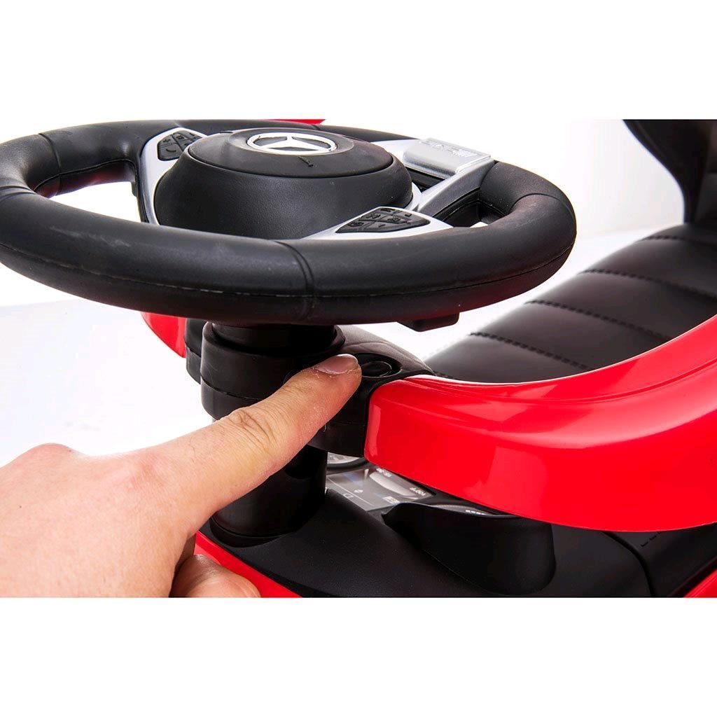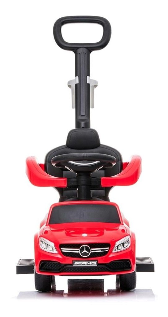 Multifunkční odrážedlo Baby Mix 3v1 Mercedes Benz AMG C63 je vybaveno multifunkčním volantem s melodiemi a také zvukem klaksonu. Zábava na něm pomáhá k rozvoji manuálních schopností dítěte, rozvoji sluchu, zraku i hmatu. Jeho sportovní vzhled upoutá pozornost nejen každého dítěte ale i rodičů. S autíčkem si děti užijí spoustu legrace a zábavy protože má nenapodobitelný vzhled skutečného Mercedesu, komfortní široké sedadlo s otevíracím úložným prostorem, volant, kvalitní plastová kola a pohodlnou a zároveň pevnou vodící tyč s držákem na nápoje. Vodící tyč, opěrky na ruce a podnožky lze odejmout, a tím dítě využije autíčko jako klasické odrážedlo. Určeno pro děti od 24 měsíců věku.