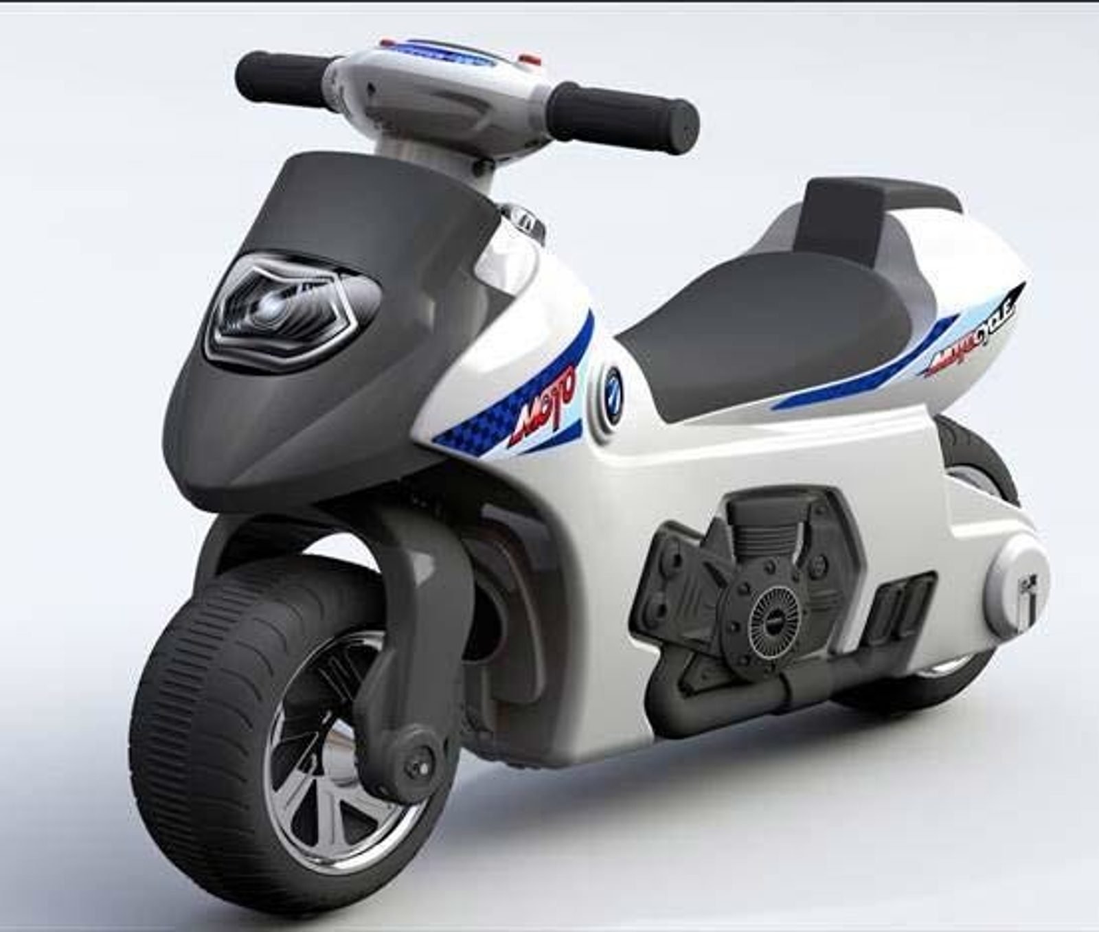 Stylové dětské odrážedlo ve tvaru motorky. Toto dětské odrážedlo zaručí Vašemu dítěti spoustu zábavy a legrace. Motorka má na volantu tlačítko, které po zapnutí hraje melodie, rozsvítí a rozbliká světla a také tlačítko, které po zapnutí vydává zvuk klaksonu. Je vyrobené z kvalitního plastového materiálu. Je to skvělá a bezpečná hračka.Tvar hračky pomáhá rozvíjet motorické schopnosti dítěte v době, kdy se učí chodit. Zaoblené hrany a pevná kola zajišťují bezpečnost při hraní.Jezdítko je určeno jak pro nejmenší děti, které umí sedět, tak i pro děti, které se už naučily chodit. V balení jsou nálepky, kterými lze odrážedlo vyzdobit. Hrát si s ním je absolutně bezpečné.