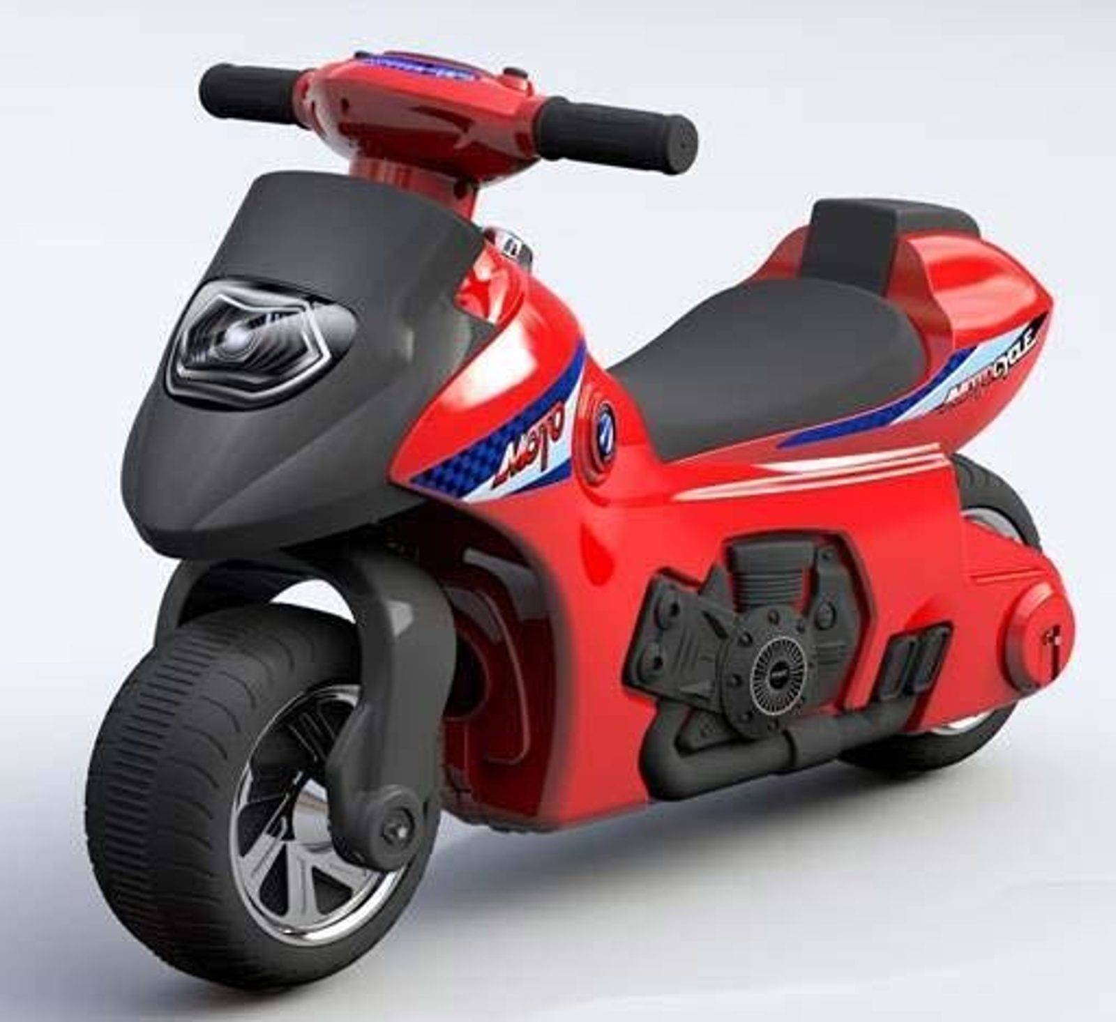 Stylové dětské odrážedlo ve tvaru motorky. Toto dětské odrážedlo zaručí Vašemu dítěti spoustu zábavy a legrace. Motorka má na volantu tlačítko, které po zapnutí hraje melodie, rozsvítí a rozbliká světla a také tlačítko, které po zapnutí vydává zvuk klaksonu. Je vyrobené z kvalitního plastového materiálu. Je to skvělá a bezpečná hračka. Tvar hračky pomáhá rozvíjet motorické schopnosti dítěte v době, kdy se učí chodit. Zaoblené hrany a pevná kola zajišťují bezpečnost při hraní. Jezdítko je určeno jak pro nejmenší děti, které umí sedět, tak i pro děti, které se už naučily chodit. V balení jsou nálepky, kterými lze odrážedlo vyzdobit. Hrát si s ním je absolutně bezpečné.