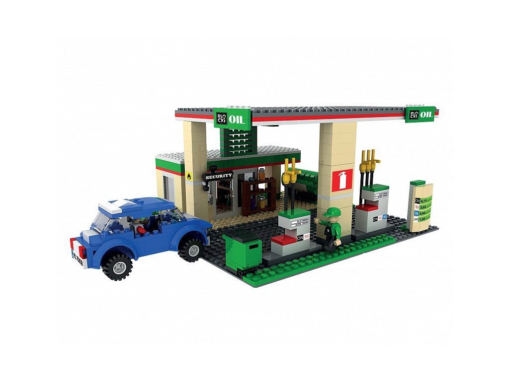 Stavebnice Blocki MyCity benzínová pumpa umožní Vašemu dítěti stát se pravým čerpadlářem. Stavebnice se skládá ze 435 dílků, obsahuje čerpací stanici s prodejnou, figurky řidiče a obsluhy benzínové pumpy, autíčko, popelnici. Stavebnice zaručí dětem mnoho hodin zábavy, pomůže jim rozvíjet kreativitu, manuální dovednosti a zlepšuje logické myšlení. Stavebnice je kompatibilní se stavebnicemi ostatních světových značek jako je Lego, Sluban apod. Všechny dílky stavebnice se velmi snadno propojují a jsou vyrobeny z kvalitního plastu.