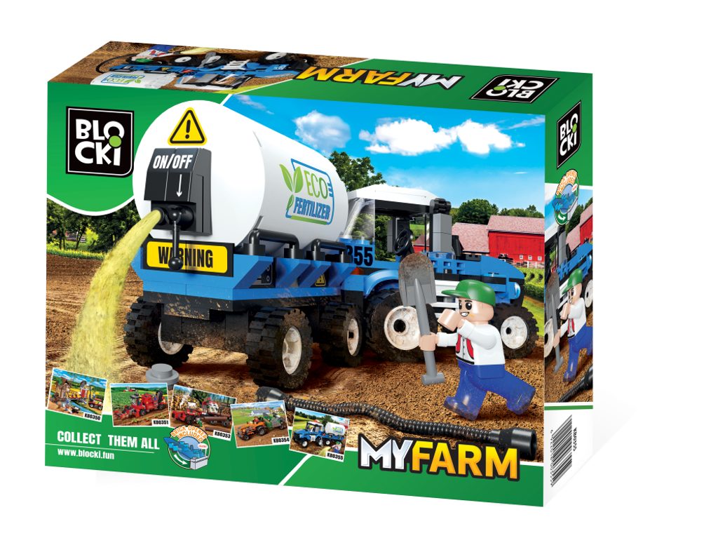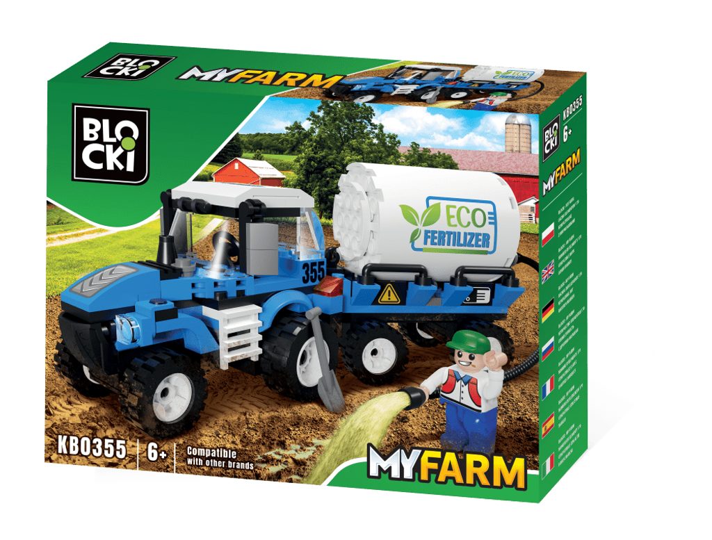 Stavebnice Blocki MyFarm traktor s vlečkou a postřikovačem umožní Vašemu dítěti stát se skutečným zemědělcem. Stavebnice se skládá z 170 dílků, obsahuje kompletní traktor s příslušenstvím a vlečkou a také postavičku farmáře. Stavebnice zaručí dětem mnoho hodin zábavy, pomůže jim rozvíjet kreativitu, manuální dovednosti a zlepšuje logické myšlení. Stavebnice je kompatibilní se stavebnicemi ostatních světových značek jako je Lego, Sluban a další. Všechny dílky stavebnice se velmi snadno propojují a jsou vyrobeny z kvalitního plastu.