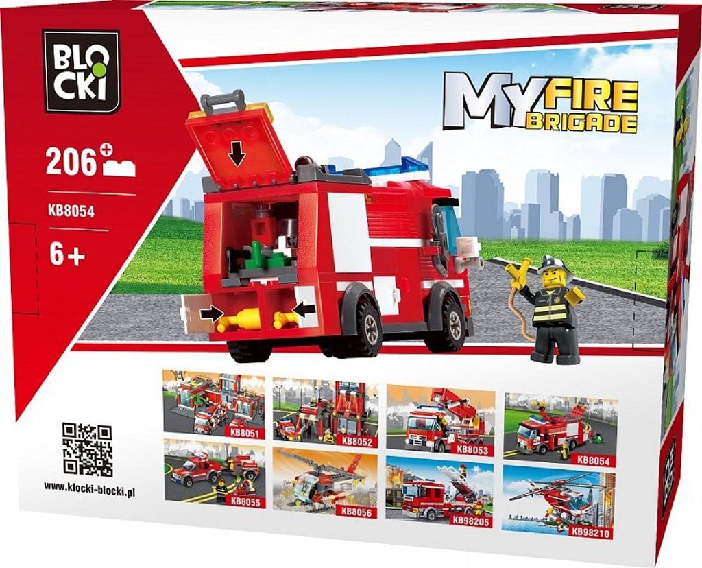 Stavebnice Blocki My Fire hasičské auto umožní Vašemu dítěti stát se řidičem požárního auta. Kompletně vybavené hasičské auto se skládá z 208 dílků a obsahuje také figurku hasiče. Stavebnice zaručí dětem mnoho hodin zábavy, pomůže jim rozvíjet kreativitu, manuální dovednosti a zlepšuje logické myšlení. Stavebnice je kompatibilní se stavebnicemi ostatních světových značek jako je Lego, Sluban a další. Všechny dílky stavebnice se velmi snadno propojují a jsou vyrobeny z kvalitního plastu.