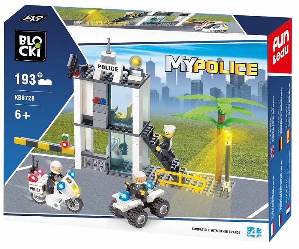 Stavebnice Blocki MyPolice dálniční policejní stanice umožní Vašemu dítěti stát se pravými členy policejního sboru. Kompletně vybavená policejní stanice se skládá z 193 dílků a součástí jsou také 3 figurky policistů, policejní motocykl a čtyřkolka. Stavebnice zaručí dětem mnoho hodin zábavy, pomůže jim rozvíjet kreativitu, manuální dovednosti a zlepšuje logické myšlení. Stavebnice je kompatibilní se stavebnicemi ostatních světových značek jako je Lego, Sluban a další. Všechny dílky stavebnice se velmi snadno propojují a jsou vyrobeny z kvalitního plastu.