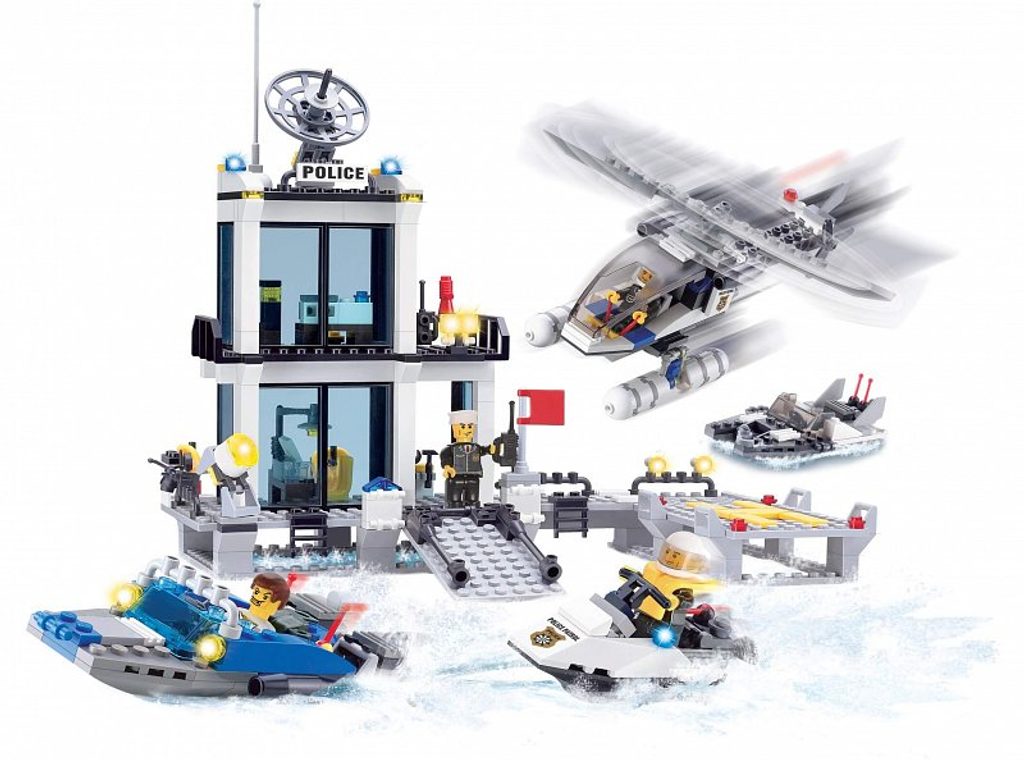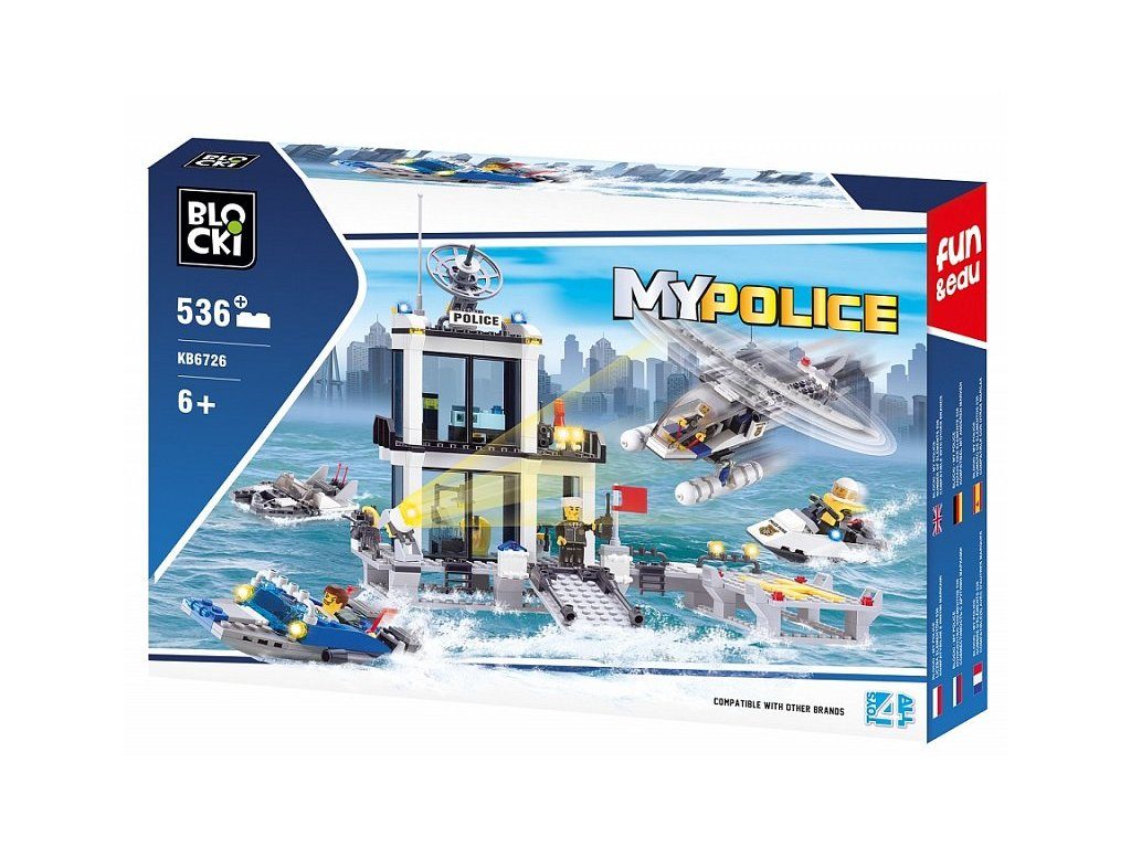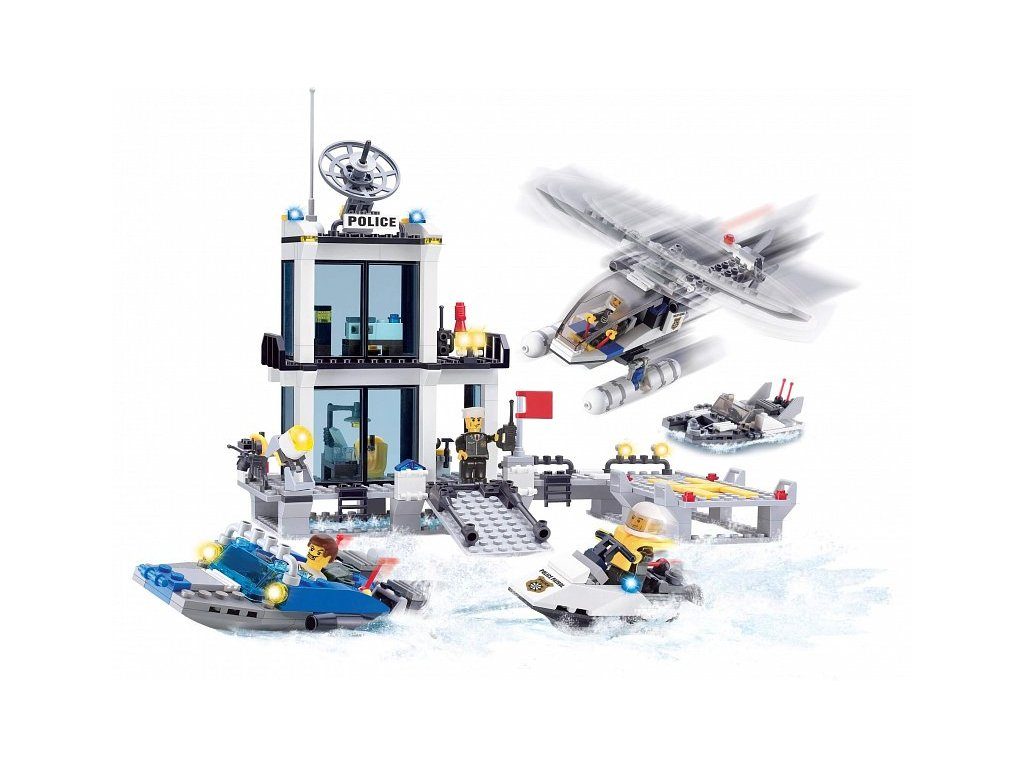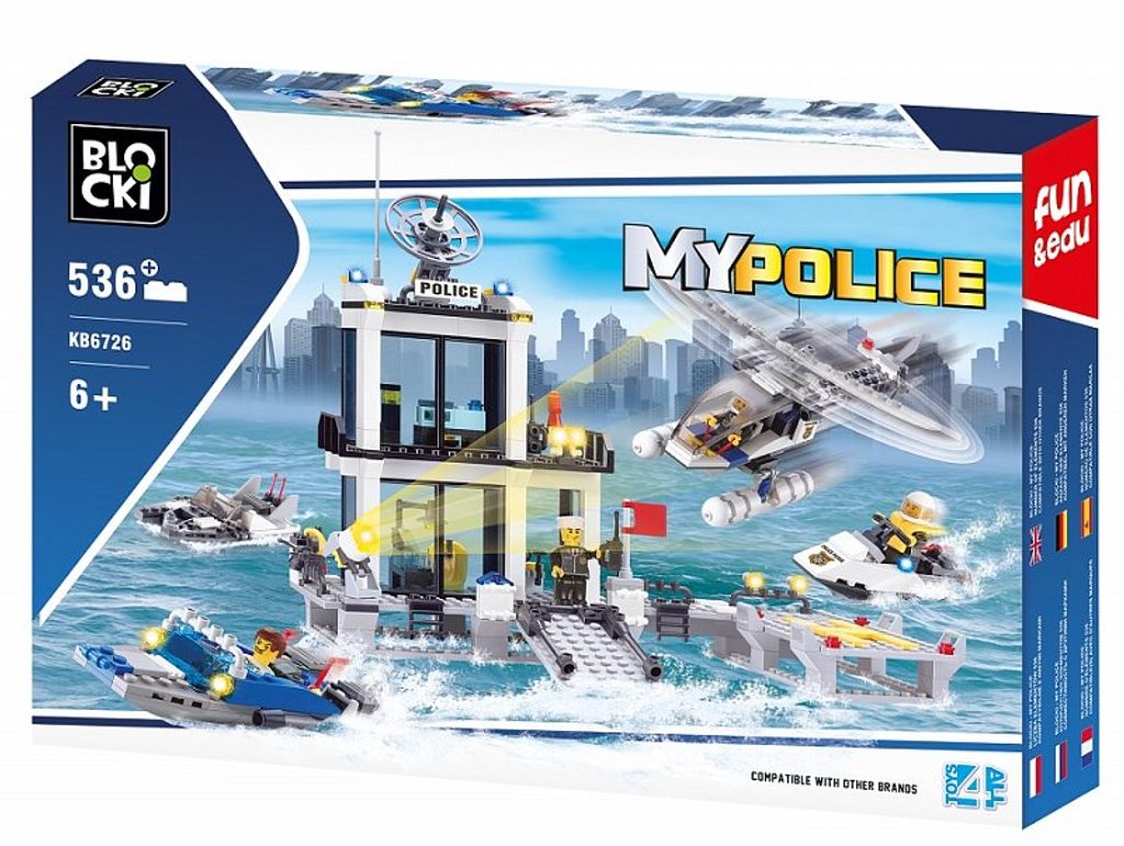 Stavebnice Blocki policejní stanice umožní Vašemu dítěti stát se pravými členy pobřežní stráže. Kompletně vybavená policejní vodní stanice se skládá z 536 dílků, obsahuje budovu policejní stanice s molem, figurky, vodní skůtry, vrtulník a samolepky. Stavebnice zaručí dětem mnoho hodin zábavy, pomůže jim rozvíjet kreativitu, manuální dovednosti a zlepšuje logické myšlení. Stavebnice je kompatibilní se stavebnicemi ostatních světových značek.Všechny dílky stavebnice se velmi snadno propojují a jsou vyrobeny z kvalitního plastu.