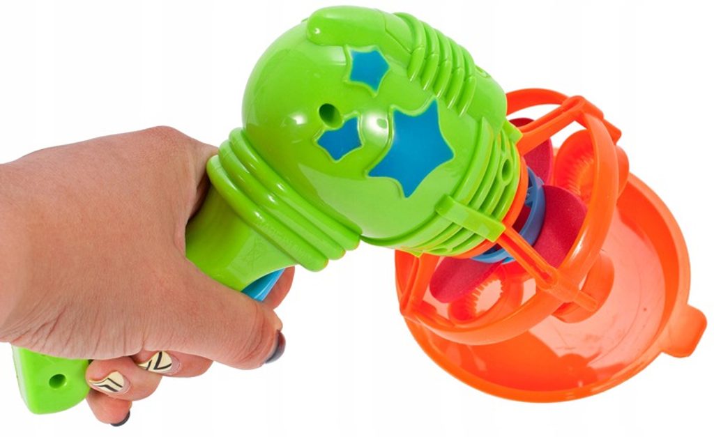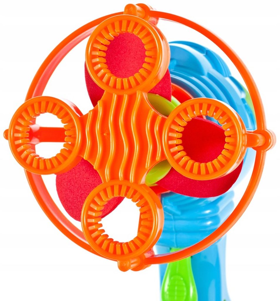 Dětský bublifuk ve tvaru větráčku s rukojeťí Bubble Cyclone dokáže vytvořit nekonečné množství bublin. Mýdlový roztok je třeba nalít do misky a poté  do něj bublinkovač namočit. Zmáčknutím spouště se spouští větráček - generátor bublin a začnou se vytvářet bubliny.  Hračka je vyrobena z plastu a je určena pro děti od 36 měsíců věku.
