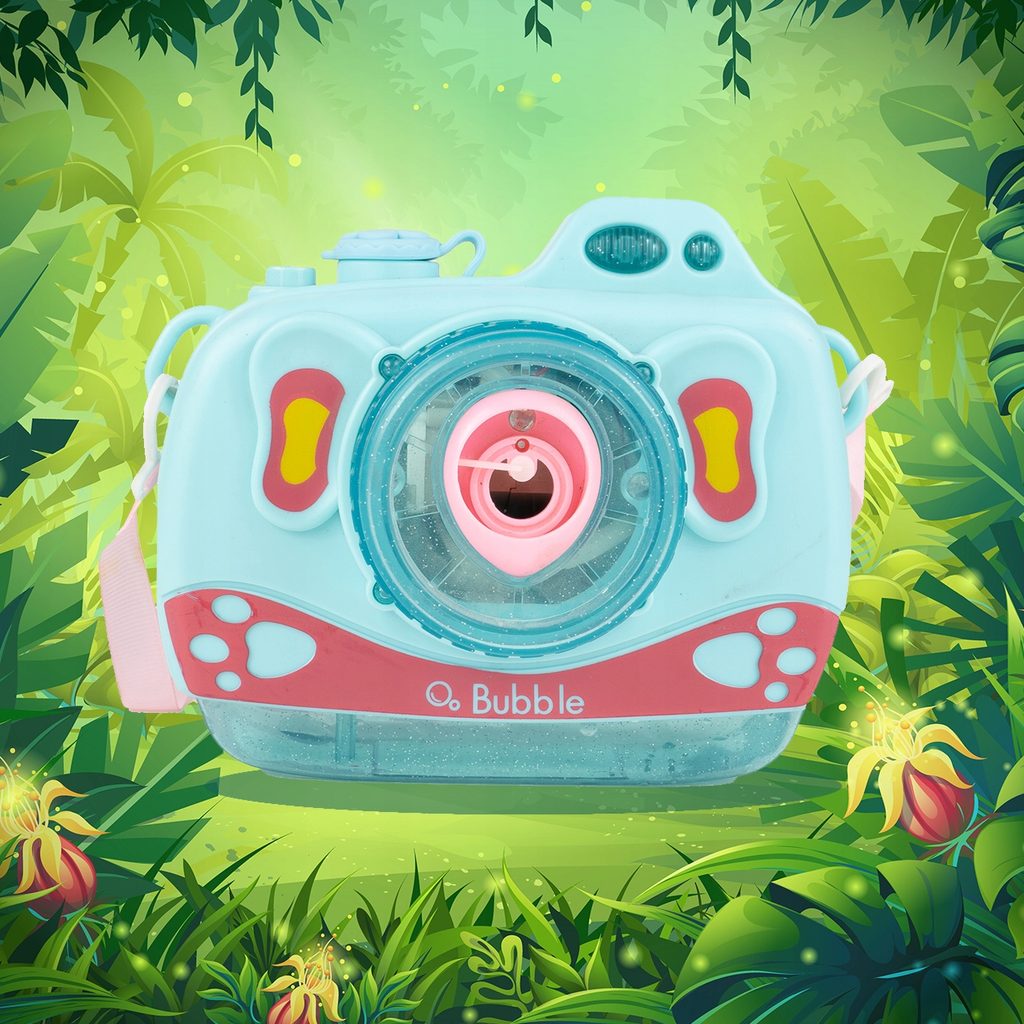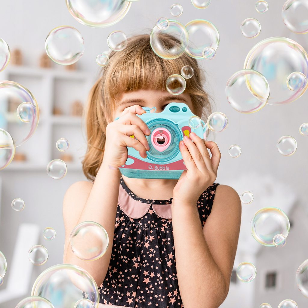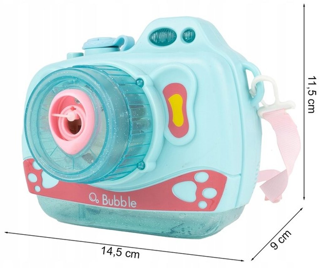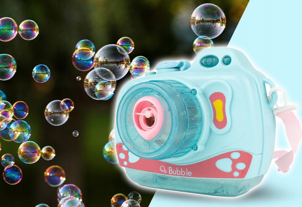 Dětský bublifuk ve tvaru fotoaparátu Bubble Cam dokáže vytvořit nekonečné množství bublin. Nejdříve je třeba nasadit lahvičku s mýdlovým roztokem přímo do boční části bublifuku. Zmáčknutím spouště fotoaparátu se začnou z přední části generovat bubliny za současného zvuku písničky a dětského smíchu. Součástí balení je i popruh o délce 70 cm k zavěšení fotoaparátu kolem krku. Hračka je vyrobena z plastu a je určena pro děti od 36 měsíců věku.