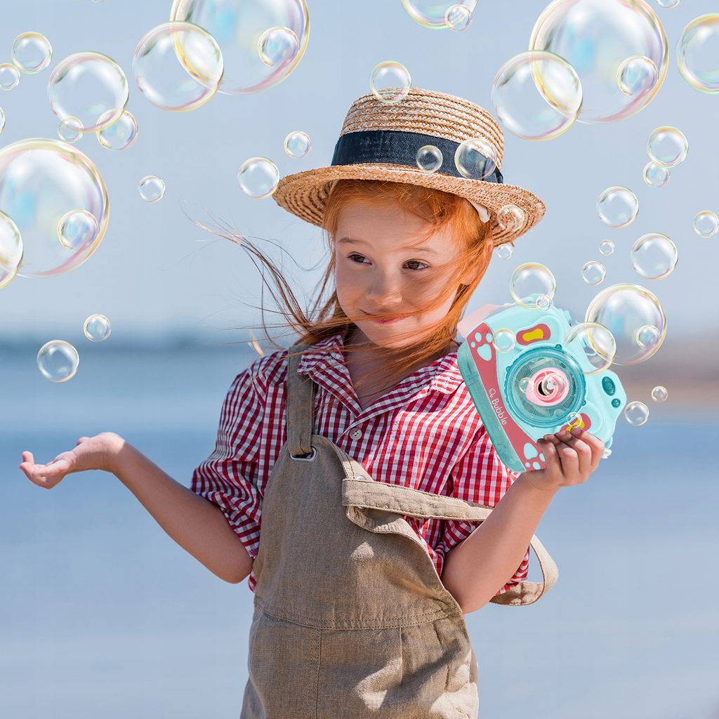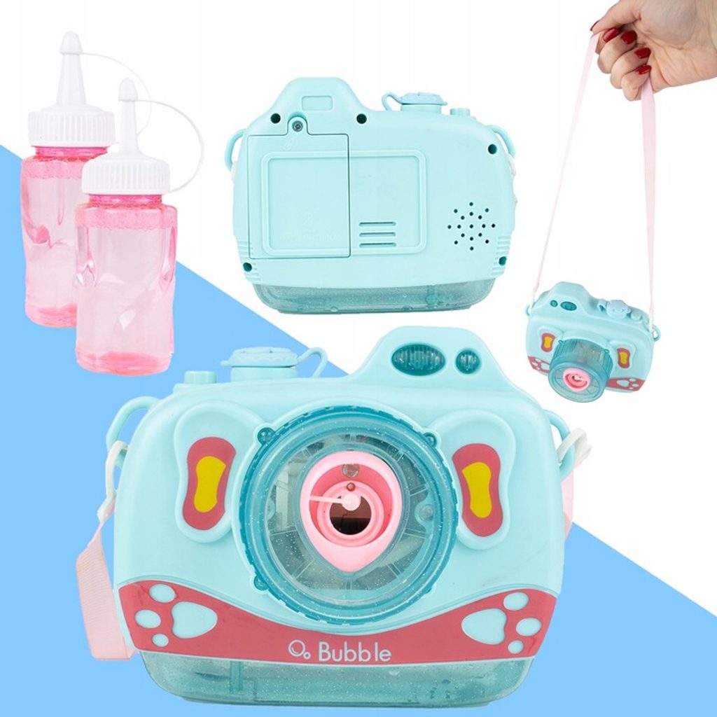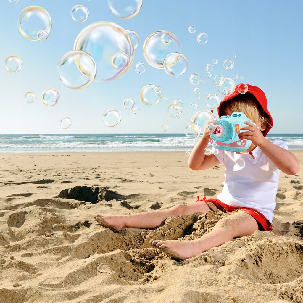 Dětský bublifuk ve tvaru fotoaparátu Bubble Cam dokáže vytvořit nekonečné množství bublin. Nejdříve je třeba nasadit lahvičku s mýdlovým roztokem přímo do boční části bublifuku. Zmáčknutím spouště fotoaparátu se začnou z přední části generovat bubliny za současného zvuku písničky a dětského smíchu. Součástí balení je i popruh o délce 70 cm k zavěšení fotoaparátu kolem krku. Hračka je vyrobena z plastu a je určena pro děti od 36 měsíců věku.