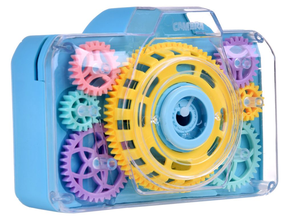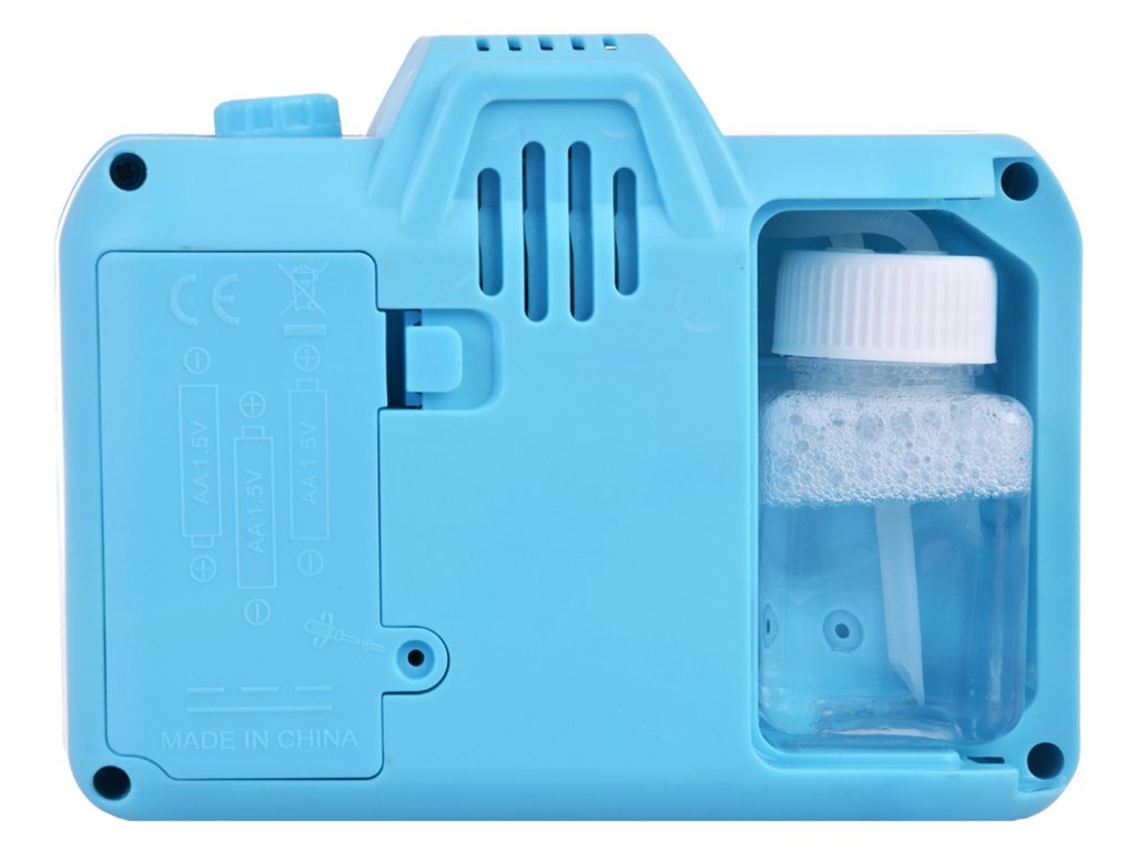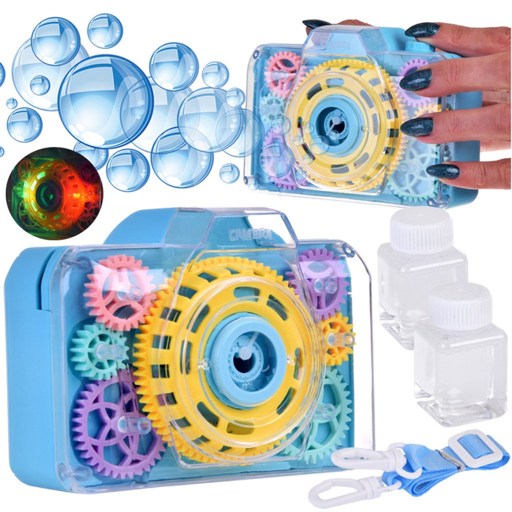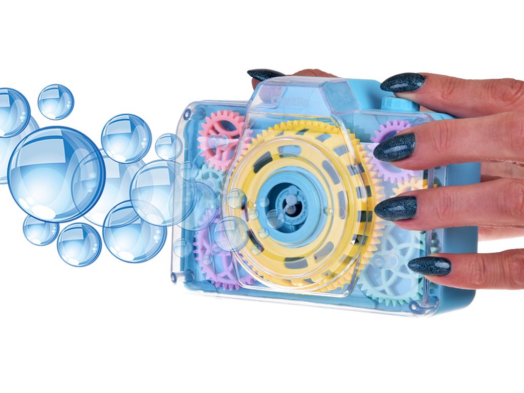 Dětský bublifuk ve tvaru fotoaparátu Bubble Camera dokáže vytvořit nekonečné množství bublin. Nejdříve je třeba nasadit lahvičku s mýdlovým roztokem přímo do boční části bublifuku. Zmáčknutím spouště fotoaparátu se začnou z přední části generovat bubliny za současného zvuku cvakání spouště. Součástí balení je i popruh o délce 86 cm k zavěšení fotoaparátu kolem krku. Hračka je vyrobena z plastu a je určena pro děti od 36 měsíců věku.