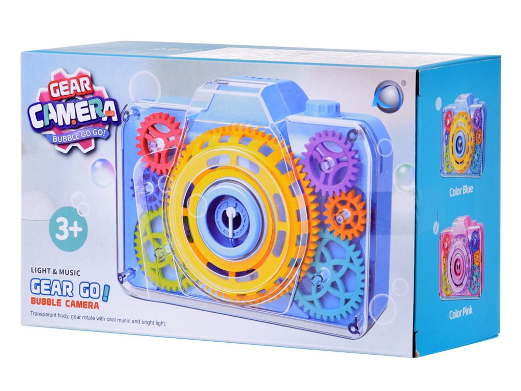 Dětský bublifuk ve tvaru fotoaparátu Bubble Camera dokáže vytvořit nekonečné množství bublin. Nejdříve je třeba nasadit lahvičku s mýdlovým roztokem přímo do boční části bublifuku. Zmáčknutím spouště fotoaparátu se začnou z přední části generovat bubliny za současného zvuku cvakání spouště. Součástí balení je i popruh o délce 86 cm k zavěšení fotoaparátu kolem krku. Hračka je vyrobena z plastu a je určena pro děti od 36 měsíců věku.