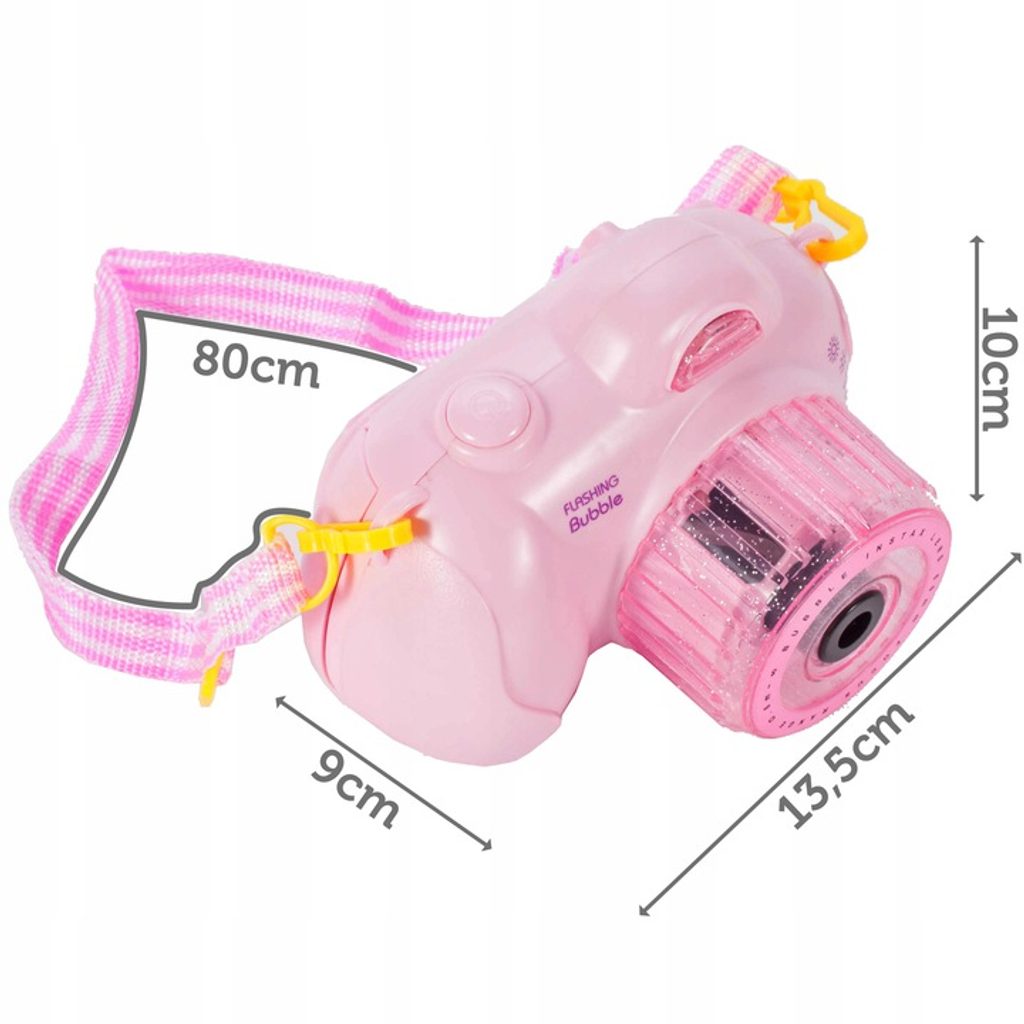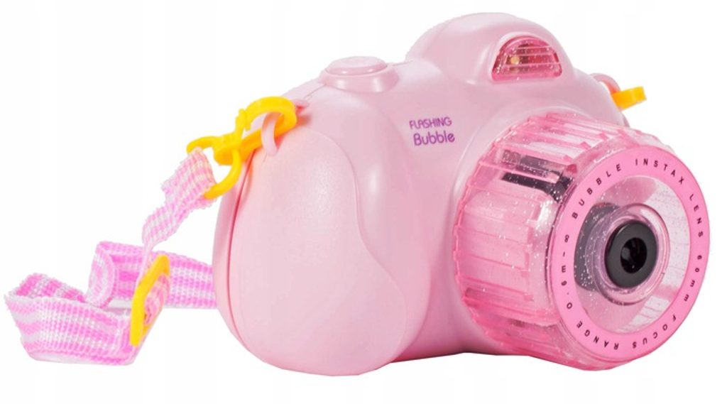 Dětský bublifuk ve tvaru fotoaparátu Flashing Bubble dokáže vytvořit nekonečné množství bublin. Nejdříve je třeba nasadit lahvičku s mýdlovým roztokem přímo do boční části bublifuku. Zmáčknutím spouště fotoaparátu se začnou z přední části generovat bubliny za současného zvuku melodie a focení. Součástí balení je i popruh o délce 80 cm k zavěšení fotoaparátu kolem krku. Hračka je vyrobena z plastu a je určena pro děti od 36 měsíců věku.