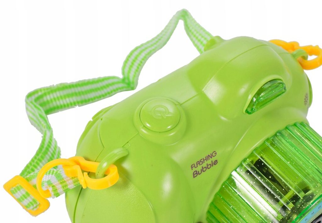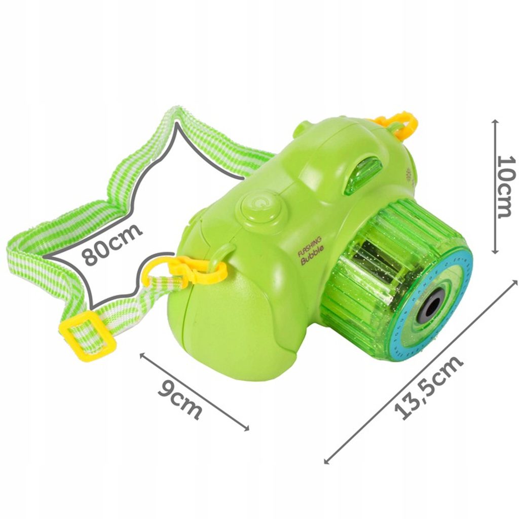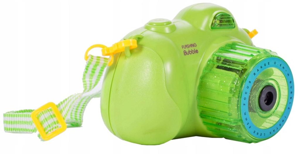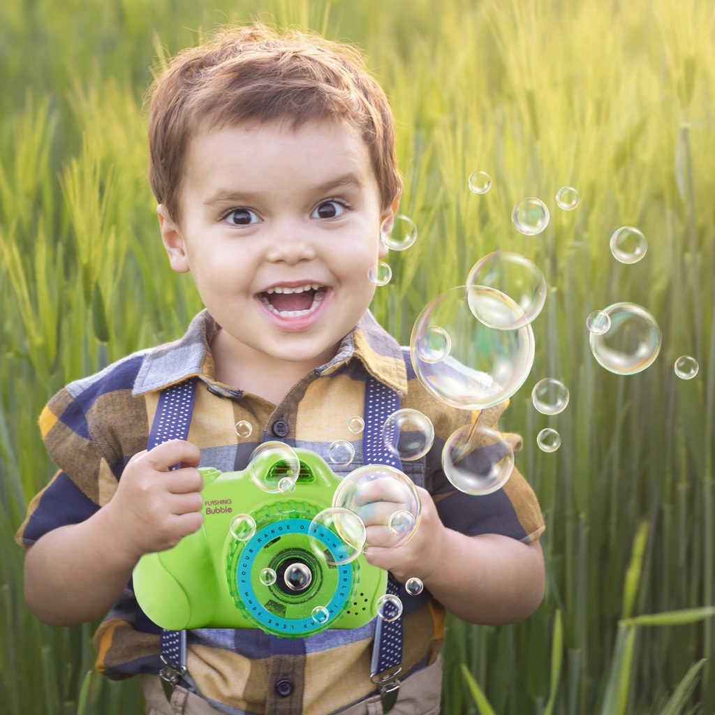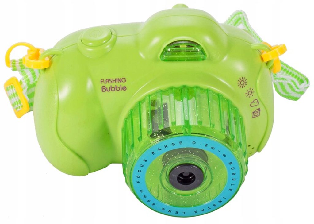 Dětský bublifuk ve tvaru fotoaparátu Flashing Bubble dokáže vytvořit nekonečné množství bublin. Nejdříve je třeba nasadit lahvičku s mýdlovým roztokem přímo do boční části bublifuku. Zmáčknutím spouště fotoaparátu se začnou z přední části generovat bubliny za současného zvuku melodie a focení. Součástí balení je i popruh o délce 80 cm k zavěšení fotoaparátu kolem krku. Hračka je vyrobena z plastu a je určena pro děti od 36 měsíců věku.