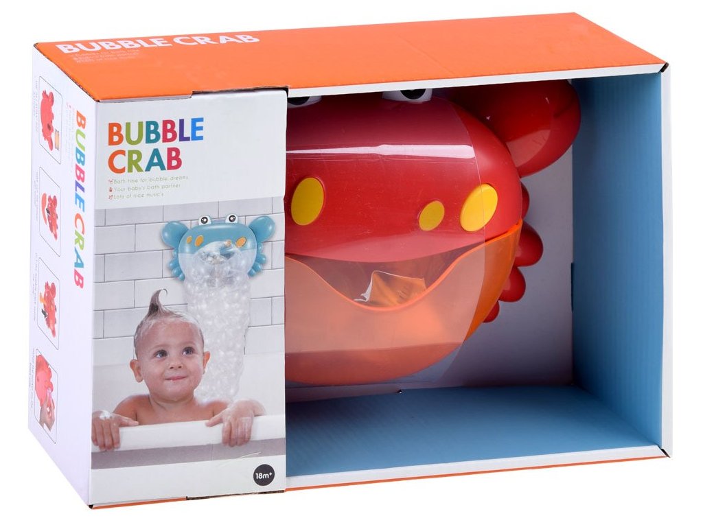 Dětský bublinkovač do vany Bubble Crab ve tvaru modrého dokáže vytvořit nekonečné množství bublin. V zadní části jsou umístěny přísavky pomocí kterých se bublinkovač zavěsí nad vanu. Poté je třeba dovnitř vlít vodu s mýdlem, po skončení hry je třeba přebytečnou tekutinu vylít. Zmáčknutím tlačítka se spustí generátor bublin a melodie. Hračka je vyrobena z plastu a je určena pro děti od 36 měsíců věku.